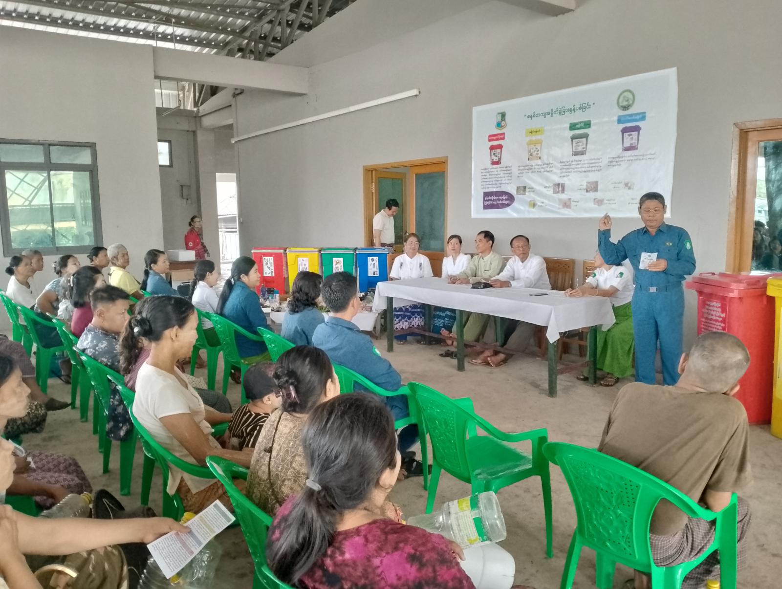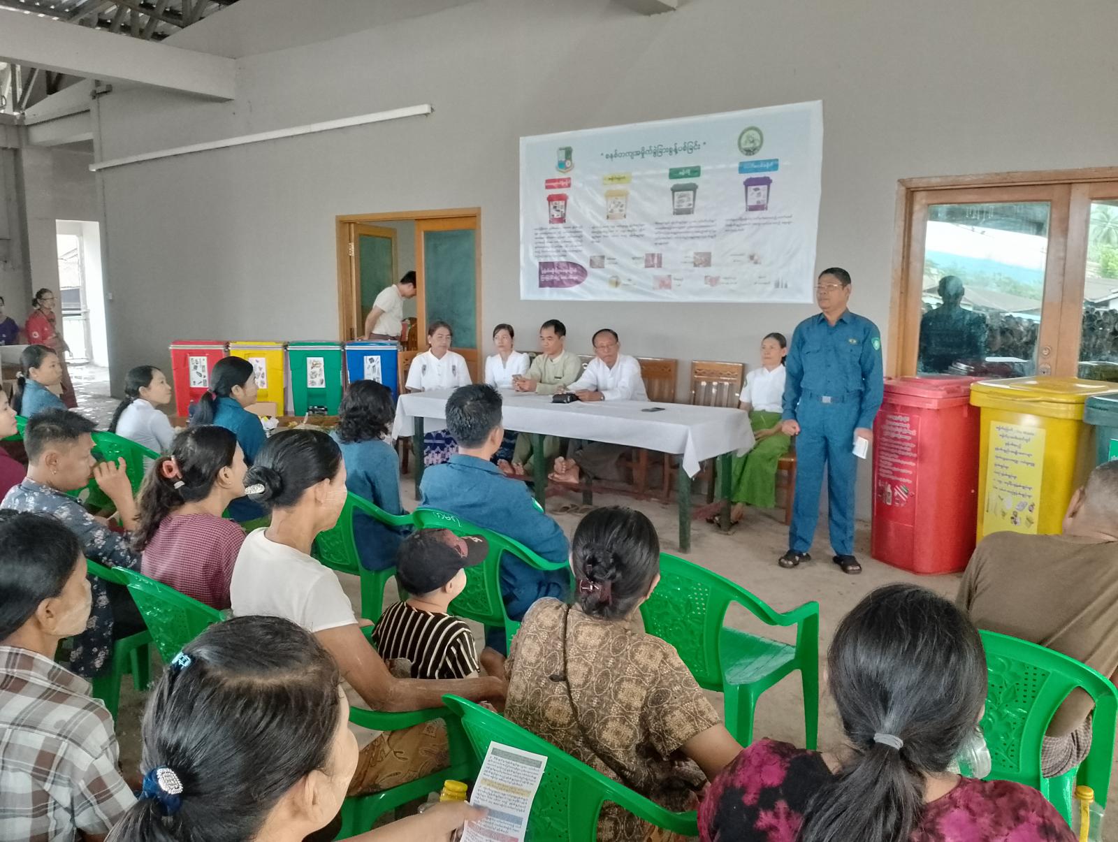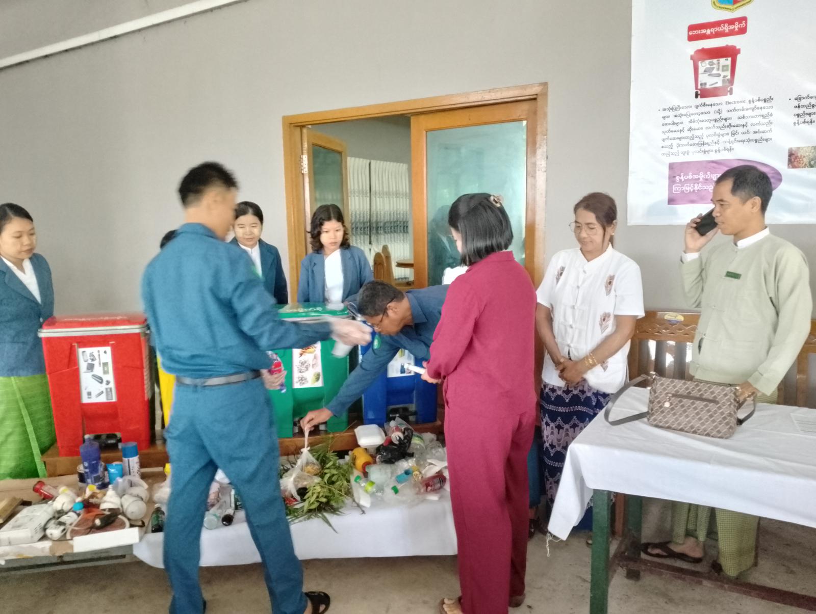စွန့်ပစ်အမှိုက်များ ခွဲခြားစွန့်ပစ်သရုပ်ပြပွဲ၌ မြို့နယ်စည်ပင်သာယာရေးအဖွဲ့ အမှုဆောင်အရာရှိ ဦးမျိုးလွင်က စွန့်ပစ်အမှိုက်များကို ခွဲခြားစွန့်ပစ်ရာတွင် အမှိုက်စို၊ အမှိုက်ခြောက်၊ ဘေးအန္တရာယ်ရှိ အမှိုက်၊ ပလတ်စတစ်အမှိုက်များကို ခွဲခြား၍ စနစ်တကျ စွန့်ပစ်နိုင်ရေးစျေးနှင့် စည်ပင်သာယာနယ်နိမိတ်အတွင်း နေထိုင်ကြသော ပြည်သူများအနေဖြင့်လည်း အမှိုက်သိမ်းယာဉ်များအပေါ်သို့ စနစ်တကျစွန့်ပစ်ကြရန်၊ ပြည်သူများပူးပေါင်းပါဝင်မှုဖြင့် အမှိုက်ခွဲခြား စွန့်ပစ်တတ်သည့် အလေ့အကျင့်ကောင်းများရရှိရေး အသိပညာပေးဟောပြောကာ အမှိုက်လေးမျိုးအား ခွဲခြားစွန့်ပစ်နည်း လက်တွေ့သရုပ်ပြသခဲ့သည်။