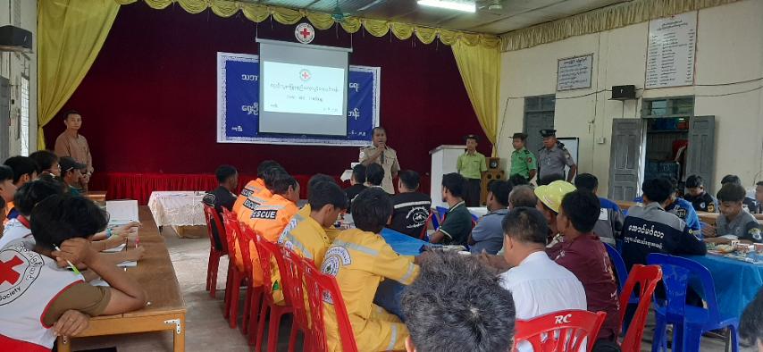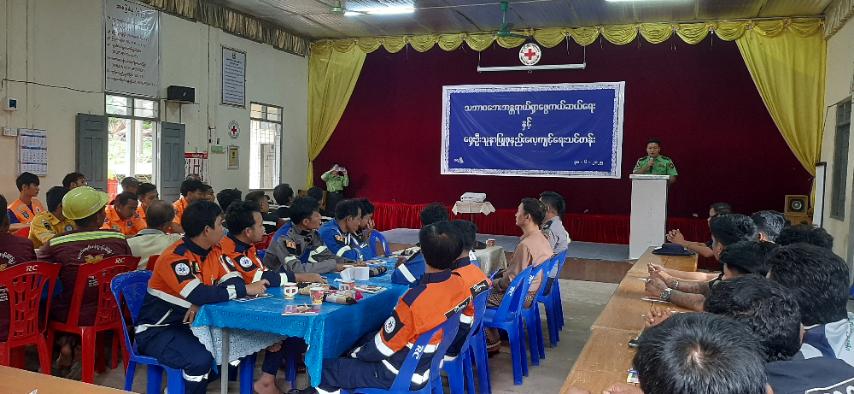 မွန်ပြည်နယ်၊ ရေးမြို့နယ်၌ သဘာဝဘေးအန္တရာယ်ကြိုတင်ကာကွယ်နိုင်ရန်နှင့် အရေးပေါ်အခြေအနေဖြစ်လာပါက အချိန်နှင့်တစ်ပြေးညီဆောင်ရွက်နိုင်ရန်အတွက် သဘာဝဘေးအန္တရာယ်ရှာဖွေကယ်ဆယ်ရေးနှင့် ရှေးဦးသူနာပြုစုနည်း လေ့ကျင့်ရေးသင်တန်းဖွင့်ပွဲအခမ်းအနားကို ဇွန်လ ၂၉ ရက်နေ့ နံနက် ၉ နာရီက ရန်မျိုးအောင်ရပ်ကွက်၊ မြို့နယ်ကြက်ခြေနီအသင်းခွဲရုံးတွင် ကျင်းပခဲ့သည်။