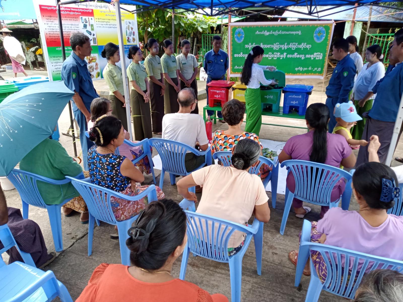 အသိပညာပေးဟောပြောပွဲတွင် ဘီးလင်းမြို့နယ် စည်ပင်သာယာရေးအဖွဲ့မှ ဦးစီးအရာရှိ ဦးစောခိုင်ဖြိုးက စွန့်ပစ်အမှိုက်အမျိုးအစားများကို သတ်မှတ်အမှိုက်ပုံးများတွင် စွန့်ပစ်ခြင်းနှင့်ပတ်သက်၍ အသိပညာပေး ဟောပြောခဲ့သည်။ ထို့နောက် အဝါ၊ အစိမ်း၊ အနီ၊ အပြာ အမှိုက်ပုံးအရောင်လိုက် အမှိုက်အမျိုးအစား(၄)မျိုး ခွဲခြားစွန့်ပစ်ခြင်းကို မြို့နယ်စည်ပင်သာယာရေးအဖွဲ့ ဝန်ထမ်းများက လက်တွေ့သရုပ်ပြသခဲ့ကြသည်။