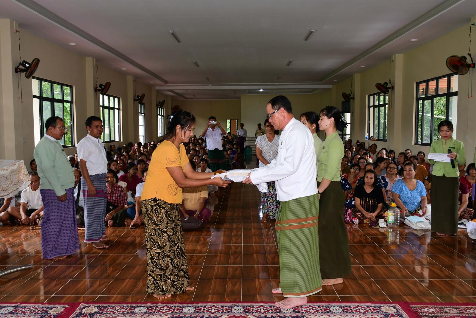 ထိုသို့ ချီးမြှင့်ပေးအပ်ရာတွင် ကရင်ပြည်နယ်ဝန်ကြီးချုပ်ဦးစောမြင့်ဦးက မိမိတို့ပြည်နယ်အစိုးရအဖွဲ့အနေဖြင့် နေရပ်စွန့်ခွာပြည်သူများ၏ ကျန်းမာရေး၊ ပညာသင်ကြားရေး၊ အေးချမ်းစွာနေထိုင် စားသောက်နိုင်ရေးအတွက် အမြဲသတိပြုကြည့်ရှုစောင့်ရှောက်ပေးလျက်ရှိပြီး ပြည်သူများ အနေဖြင့်လည်း နေထိုင်စဉ်ကာလအတွင်း ခိုက်ရန်ဖြစ်ပွားမှုမရှိဘဲ ရင်းနှီးချစ်ခင်စွာ နေထိုင်ကြရန်၊ သန့်ရှင်းသည့်သောက်သုံးရေ အသုံးပြုကြရန်၊ ကျန်းမာရေးဂရုစိုက်ကြရန်၊ တာဝန်ရှိသူများ၏ ပြောဆိုဆုံးမမှုများကို လိုက်နာနေထိုင်ကြရန်နှင့် အခက်အခဲရှိပါက အထက်ဌာနများ၊ နီးစပ်ရာအုပ် ချုပ်ရေးအဖွဲ့များသို့ သတင်းပေးပို့ကြရန် တိုက်တွန်းပြောကြားသည်။