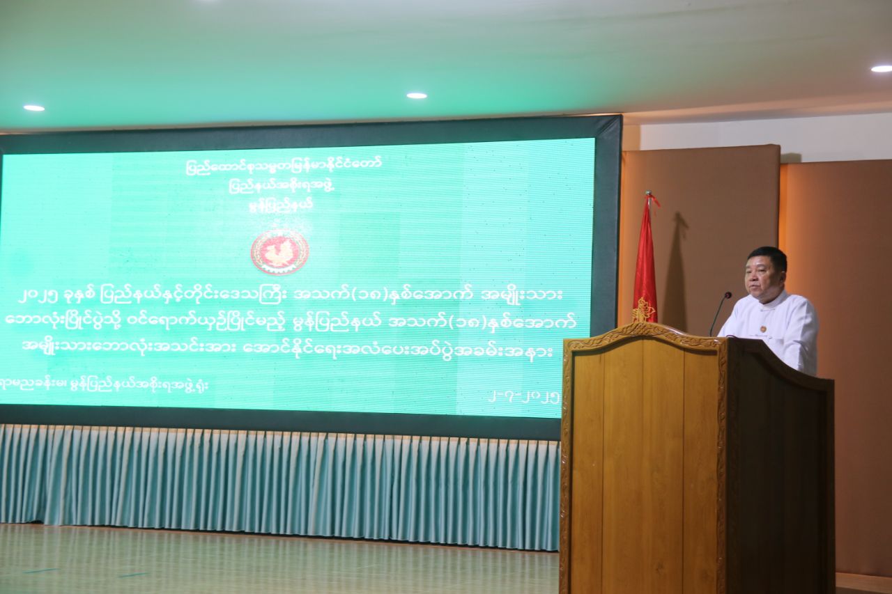၂ဝ၂၅ ခုနှစ်၊ ပြည်နယ်နှင့် တိုင်းဒေသကြီး အသက်(၁၈)နှစ်အောက် အမျိုးသားဘောလုံးပြိုင်ပွဲသို့ ဝင်ရောက်ယှဉ်ပြိုင်မည့် မွန်ပြည်နယ် အသက်(၁၈)နှစ်အောက် အမျိုးသားဘောလုံးအသင်းအား အောင်နိုင်ရေးအလံပေးအပ်ခြင်း အခမ်းအနားကို ဇူလိုင် ၂ ရက်နေ့ နံနက်ပိုင်းက မော်လမြိုင်မြို့၊ ပြည်နယ်အစိုးရအဖွဲ့ရုံးရာမညခန်းမ၌ ကျင်းပပြုလုပ်ရာ မွန်ပြည်နယ် ဝန်ကြီးချုပ် ဦးအောင်ကြည်သိန်း၊ ပြည်နယ်အစိုးရအဖွဲ့၀င်၀န်ကြီးများ ပြည်နယ်အဆင့်ဌာနဆိုင်ရာများ အမျိုးသားဘောလုံးအသင်းမှ အဖွဲ့ခေါင်းဆောင်၊ အုပ်ချုပ်သူ၊ နည်းပြများနှင့် အားကစားသမားများ တက်ရောက်ခဲ့သည်။