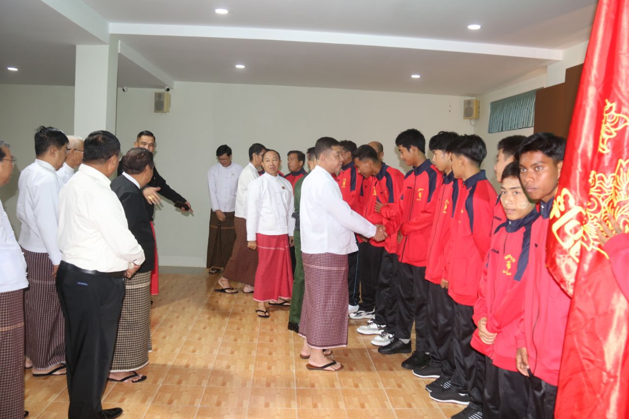 ရှေးဦးစွာမွန်ပြည်နယ် အသက်(၁၈)နှစ်အောက် အမျိုးသားဘောလုံးအသင်းမှ အဖွဲ့ခေါင်းဆောင်၊ အုပ်ချုပ်သူ၊ နည်းပြများနှင့် အားကစားသမားများက တစ်ဦးချင်းမိတ်ဆက်ဂါရဝပြုကြပြီး ပြည်နယ်ဝန်ကြီးချုပ် ဦးအောင်ကြည်သိန်းက ပြည်နယ်နှင့် တိုင်းဒေသကြီး အသက် (၁၈) နှစ်အောက် အမျိုးသားဘောလုံးပြိုင်ပွဲကို ဝင်ရောက်ယှဉ်ပြိုင်ကြမည့် ဘောလုံးအသင်းအောင်နိုင်ရေးအတွက် မွန်ပြည်နယ် ပြည်သူလူထုကိုယ်စား စိတ်ဓါတ်ခွန်အားများ ပေးလိုက်ခြင်းဖြစ်ကြောင်း၊ မွန်ပြည်နယ်အစိုးရအဖွဲ့အနေဖြင့် နယ်ပယ်စုံ၊ကဏ္ဍစုံဖွံ့ဖြိုး တိုးတက်ရေးအားထုတ်ကြိုးပမ်းဆောင်ရွက်လျက်ရှိရာမှာ အားကစားကဏ္ဍဖွံ့ဖြိုးတိုးတက်ရေးအတွက် အလေးထားဆောင်ရွက်ပေးလျက်ရှိကြောင်း၊ ပြိုင်ပွဲဝင်အားကစားသမားများအနေနဲ့ ပြိုင်ပွဲစည်းမျဉ်း/စည်းကမ်းများကို လေးစားလိုက်နာကြရမှာဖြစ်ပြီး အားကစားသမားကောင်း ပီသစွာပြုမူကျင့်ကြံနေထိုင်သွားကြဖို့နဲ့ အနိုင်မခံအရှုံးမပေးသည့် ကြံ့ခိုင်သော စိတ်ဓာတ်၊ မလျှော့သောဇွဲ၊ လုံ့လဝီရိယဖြင့် ပြိုင်ပွဲတိုင်းတွင် အနိုင်ရအောင် ရင်ဆိုင်ယှဉ်ပြိုင်ကြရစေလိုကြောင်း ပြောကြားသည်။