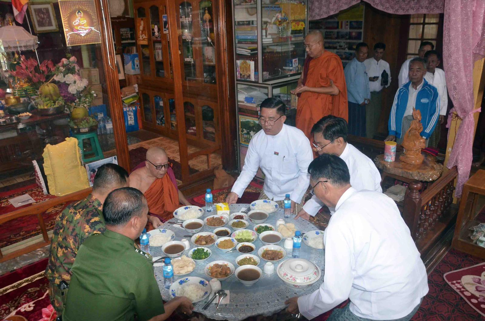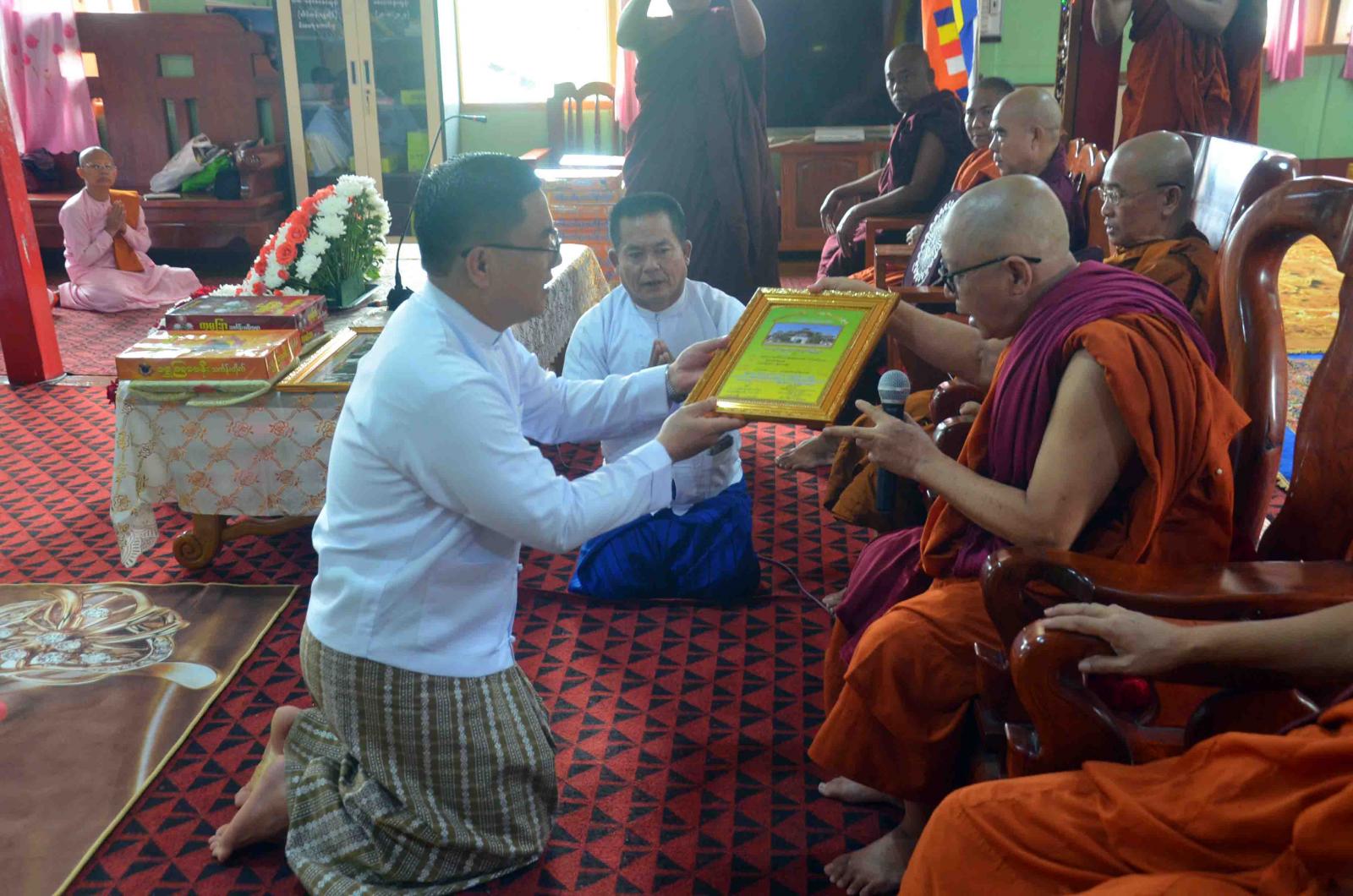 ရှေးဦးစွာ ပြည်နယ်ဝန်ကြီးချုပ်နှင့် တာဝန်ရှိသူများသည် မင်္ဂလာရပ်ကွက်၊ သီရိမင်္ဂလာပုံဟော်ကြီး ပရိယတ္တိစာသင်တိုက် ကျောင်းထိုင်ဆရာတော် အဂ္ဂမဟာသဒ္ဒမ္မဇောတိကဓဇ ဘဒ္ဒန္တစန္ဒိမာအား ဖူးမြော်ကြည်ညိုခဲ့ကြသည်။ ထို့နောက် ပြည်နယ်ဝန်ကြီးချုပ်သည် ဝါဆိုသင်္ကန်းဆက်ကပ်လှူဒါန်းခြင်း၊ သဒ္ဓမ္မဝိပုလသိမ်တော်ပြုပြင်ရန် ပြည်နယ်အစိုးရအဖွဲ့နှင့် အများပြည်သူပူးပေါင်း၍ စုပေါင်းလှူဒါန်းခဲ့မှုအား ကျောင်းထိုင်ဆရာတော်မှ ဂုဏ်ပြုမှတ်တမ်းလွှာများ ပြန်လည်ပေးအပ်ခဲ့သည်။ ဆက်လက်၍ ပြည်နယ်ဝန်ကြီးချုပ်နှင့် တာဝန်ရှိသူများသည် ကျောင်းထိုင်ဆရာတော်နှင့် သံဃာတော်အရှင်သူမြတ်များအား နေ့ဆွမ်းဆက်ကပ်လှူဒါန်းခဲ့သည်။