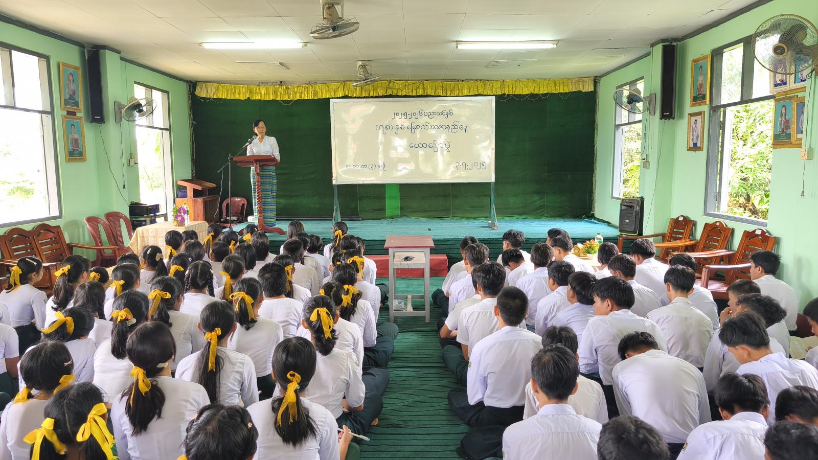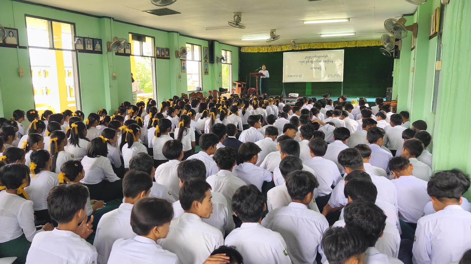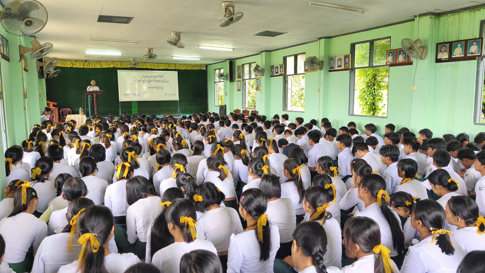 ဟောပြောပွဲတွင် ကျောင်းအုပ်ဆရာမကြီးဒေါ်မို့မို့သိန်းက အမှာစကားပြောကြားပြီး မြို့နယ်ပြန်ကြားရေးနှင့်ပြည်သူ့ဆက်ဆံရေးဦးစီးဌာနမှ ဦးစီးအရာရှိဒေါ်မိုးမိုးစန္ဒာထွန်းက လူငယ်နှင့်ပြည်သူများအား သမိုင်းအသိပညာဗဟုသုတများကြွယ်ဝစေရန်၊ အမျိုးသားစည်းလုံးညီညွတ်မှုကို မြှင့်တင်ပေးနိုင်ရန်အတွက် ဟောပြောပွဲကို ပြုလုပ်ရခြင်းဖြစ်ကြောင်းနှင့် အာဇာနည်နေ့အကြောင်းသိကောင်းစရာများကို ရှင်းလင်းပြောကြားသည်။ ထို့နောက် အလယ်တန်းပြဆရာမ ဒေါ်လဲ့လဲ့မော်က အာဇာနည်၏ အဓိပ္ပါယ်၊ အာဇာနည်နေ့ဖြစ်ပေါ်လာပုံသမိုင်းအကြောင်း၊ အာဇာနည်(၉)ဦး၏ အတ္ထုပ္ပတ္တိအကြောင်းအရာများကို ရှင်းလင်းပြောကြားသည်။