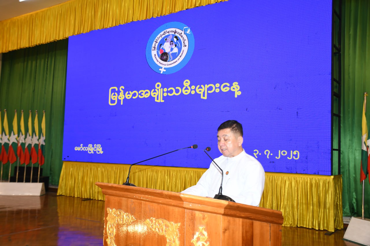 အခမ်းအနားတွင် ပြည်နယ်ဝန်ကြီးချုပ်က နိုင်ငံတော်အစိုးရအနေဖြင့် အမျိုးသမီးများ၏ အခန်းကဏ္ဍ ဖွံ့ဖြိုးတိုးတက်ရေး၊ စွမ်းဆောင်ရည်မြင့်မားစေရေးနှင့်အကာအကွယ်ပေးရေး ဆိုင်ရာလုပ်ငန်းများ၏ အရေးကြီးမှုကို ပြည်သူလူထုမှ သိရှိနားလည်ပြီး ပူးပေါင်းပါဝင် ဆောင်ရွက်လာနိုင်စေရန် ရည်ရွယ်ပြီး နှစ်စဉ်နှစ်တိုင်း အမျိုးသမီးများနှင့်ပတ်သက်သော အထိမ်းအမှတ် အခမ်းအနားများ ကျင်းပရခြင်းဖြစ်ကြောင်း၊ မြန်မာနိုင်ငံအနေနဲ့ ပဋိပက္ခအတွင်း လိင်အကြမ်းဖက်မှု တားဆီးကာကွယ်ရေးနှင့် တုံ့ပြန်ဆောင်ရွက်ရေးဆိုင်ရာ ပူးတွဲကြေညာချက် (Joint Communique) ကို ၂၀၁၈ ခုနှစ်၊ ဒီဇင်ဘာလမှာ လက်မှတ်ရေးထိုးကာ အမျိုးသားအဆင့်လုပ်ငန်းစီမံချက်ကို အကောင်အထည်ဖော်လျက်ရှိရာမှာ ၂၀၂၄ ခုနှစ်၊ နိုဝင်ဘာလမှစ၍ လုပ်ငန်းစီမံချက်စတုတ္ထသက်တမ်းကို ဆက်လက်အကောင်အထည်ဖော်ဆောင်ရွက်လျက်ရှိကြောင်း၊ မြန်မာအမျိုးသမီးများသည် မိသားစုတာဝန်များသာမက နိုင်ငံတော် ကာကွယ်ရေး၊ ပညာရေး၊ ကျန်းမာရေး၊ စီးပွားရေးနှင့် ငြိမ်းချမ်းရေးတို့အပါအဝင် အရေးပါတဲ့ကဏ္ဍတွေမှာ ဘက်ပေါင်းစုံကနေ ပါဝင်ထမ်းဆောင်နေကြတာဖြစ်ကြောင်း၊ မြန်မာနိုင်ငံရဲ့ မြို့ပြ၊ ကျေးလက်မကျန် အရပ်ဒေသအသီးသီးမှာ နေထိုင်ကြတဲ့ အမျိုးသမီးများအားလုံးကို လေးစားဂုဏ်ယူ ဝမ်းမြောက်မိပါကြောင်းနှင့် အမျိုးသမီးများရဲ့ ဘဝဖွံ့ဖြိုးရေး၊ စွမ်းဆောင်ရည်မြှင့်တင်ရေး၊ ကျား၊ မ တန်းတူညီမျှရေးနှင့်အမျိုးသမီးများအား အကြမ်းဖက်မှုမှ တားဆီးကာကွယ် စောင့်ရှောက်ရေးလုပ်ငန်းများကို နိုင်ငံတော်အစိုးရနဲ့အတူ ပြည်သူလူထုတစ်ရပ်လုံးက ပူးပေါင်းပါဝင်ကြရန် တိုက်တွန်းပြောကြားသည်။