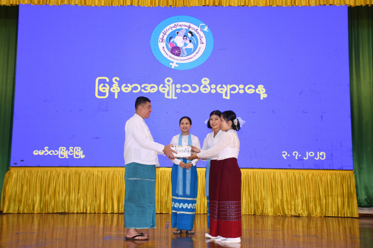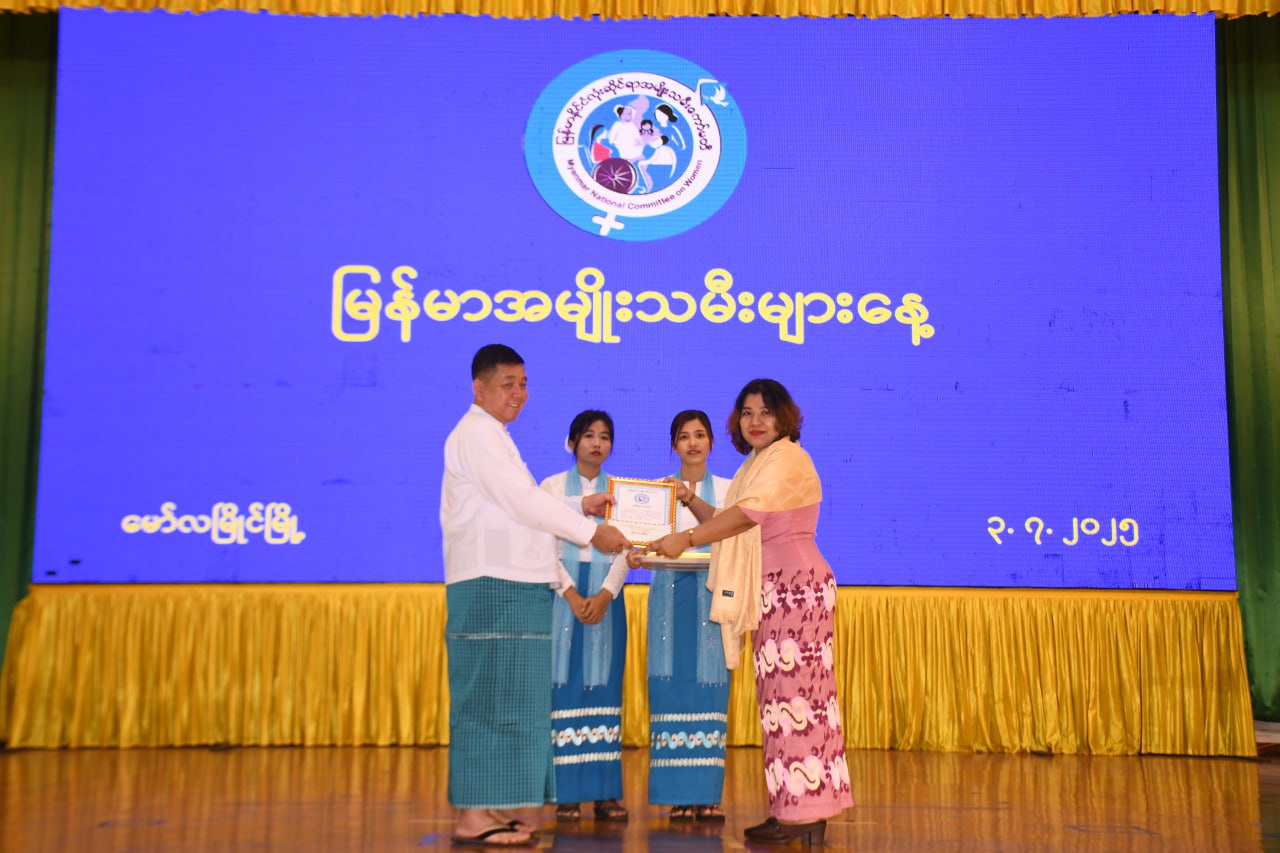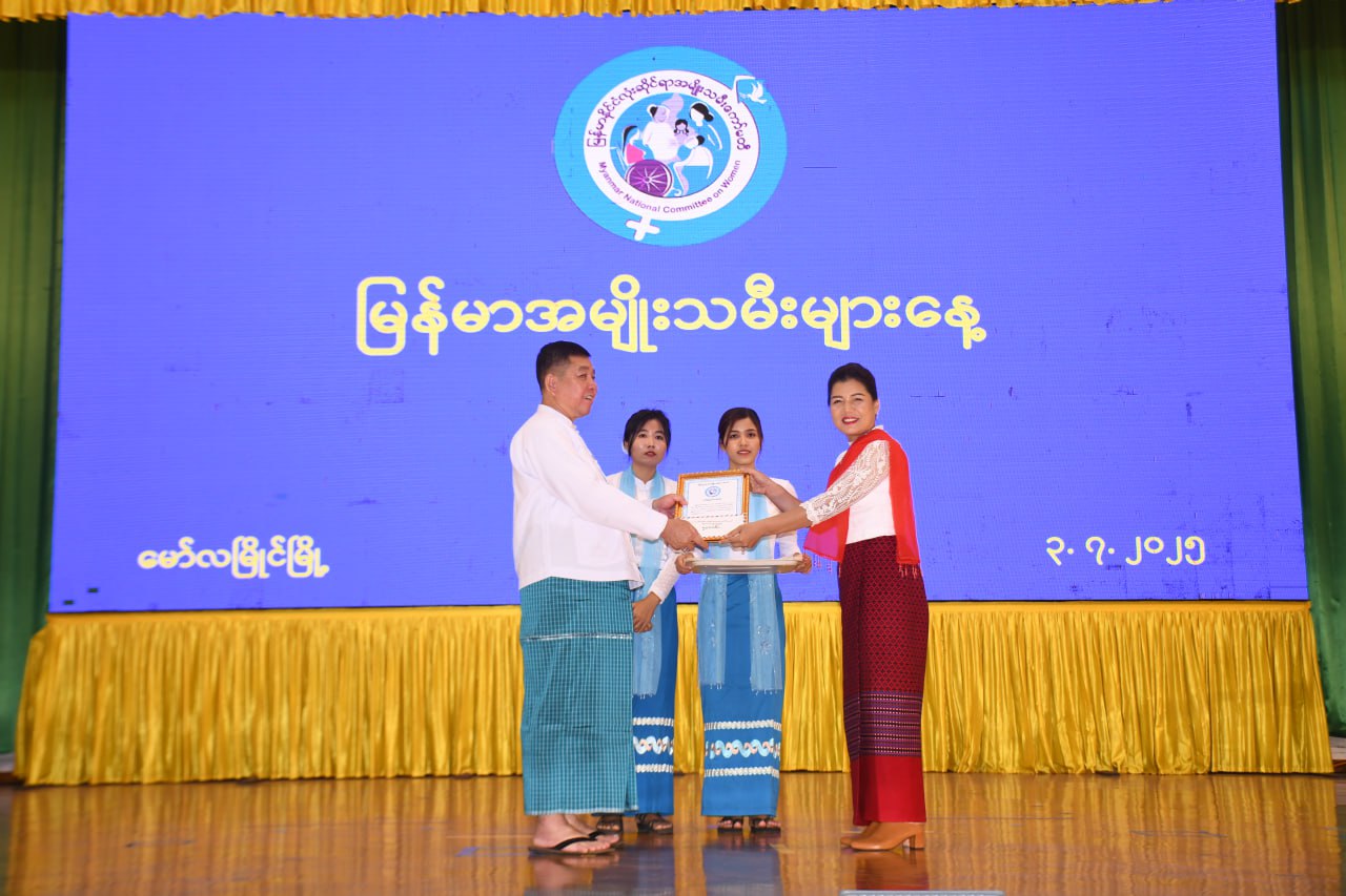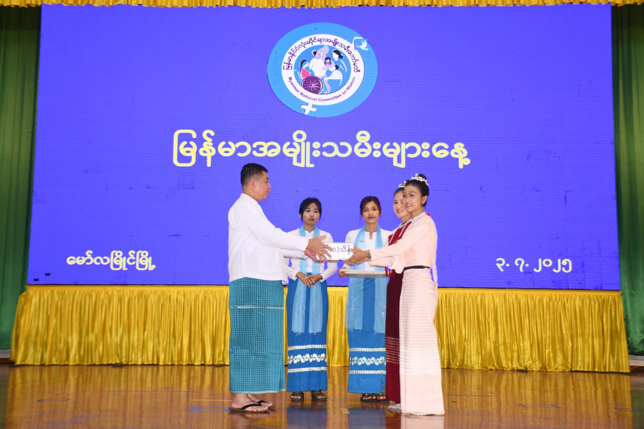 ဆက်လက်၍ မြန်မာအမျိုးသမီးများနေ့အထိမ်းအမှတ် Video clip အား ပြသခဲ့မှုအပေါ် ကြည့်ရှုအားပေးခဲ့ကြပြီး ပြည်နယ်ဝန်ကြီးချုပ်၊ ပြည်နယ်တရားလွှတ်တော်တရားသူကြီးချုပ်၊ ပြည်နယ်အစိုးရအဖွဲ့ဝင်ဝန်ကြီးများ၏ ဇနီးတို့က မွန်ပြည်နယ်အတွင်း စီးပွားရေးကဏ္ဍ၊ အားကစားကဏ္ဍ၊ ပညာရေးကဏ္ဍများတွင် ထူးချွန်ခဲ့သော အမျိုးသမီးများအား ဆုများအသီးသီး ပေးအပ်ချီးမြှင့်ခဲ့ကြသည်။