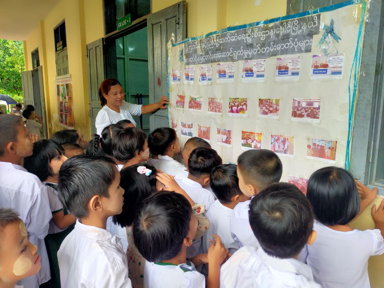 ထို့နောက် ကျောင်းအုပ်ဆရာမကြီးက ကျေးဇူးတင်စကားပြောကြားပြီး ပြန်ကြားရေးနှင့်ပြည်သူ့ဆက်ဆံရေးဦးစီးဌာနမှ ကျောင်းသား၊ ကျောင်းသူများ ဖတ်ရှု လေ့လာနိုင်ရန်ရုပ်ပြပုံပြင်များ၊ စာစောင်များစသည့် ကလေးများအသိပညာတိုးပွားရေး စာအုပ်စာပေများ၊ စာဖတ်ရှိန်မြှင့်တင်ရေးတို့နှင့်ပတ်သက်သည့် ဆောင်းပါး၊ ကဗျာ၊ ကာတွန်း သိမှတ်ဖွယ်ရာများ စသည့်အသိပညာပေးနံရံကပ်စာစောင်များ ဓာတ်ပုံများကို ခင်းကျင်းပြသခဲ့ရာ ကျောင်းသား၊ ကျောင်းသူများက စိတ်ပါ၀င်စားစွာ ကြည့်ရှုလေ့လာခဲ့ကြောင်း သိရသည်။