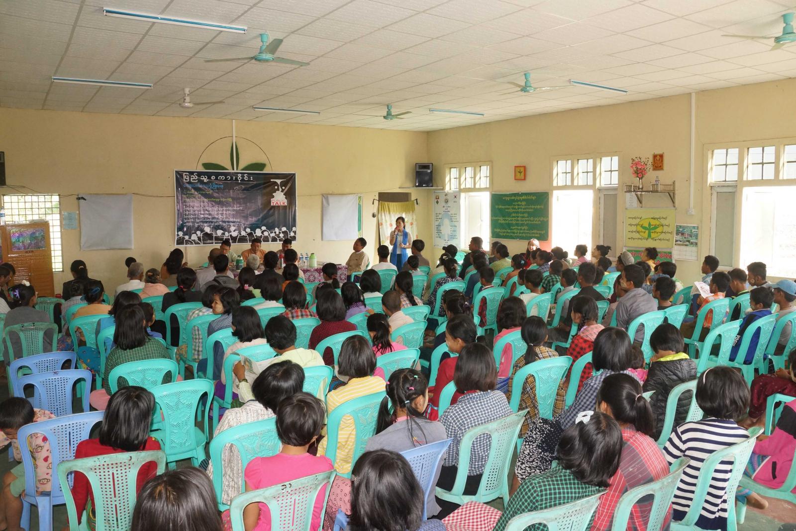 အခမ်းအနားတွင် ဒက္ခိဏခရိုင် ပြန်ကြားရေးနှင့်ပြည်သူ့ဆက်ဆံရေးဦးစီးဌာန ဦးစီးအရာရှိ ဒေါ်သီတာအေး က ကျေးလက်ဒေသဖွံ့ဖြိုးရေး ပြည်သူ့စကားဝိုင်းကျင်းပရခြင်း၏ ရည်ရွယ်ချက်များနှင့် စပ်လျဉ်း၍ ရှင်းလင်းပြောကြားသည်။
