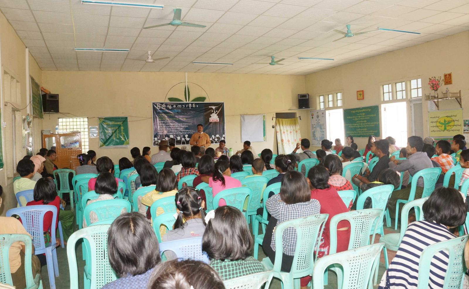 ဒီမိုကရေစီ အင်္ဂါရပ်နှင့်အညီ အများပြည်သူနှင့် အစိုးရတာဝန်ရှိသူများအကြား ဆွေးနွေးတိုင်ပင်ရမည့်အကြောင်းအရာကိစ္စများကို ပွင့်လင်းမြင်သာစွာ ဆွေနွေးတိုင်ပင်နိုင်ရန်၊ မိမိရပ်ရွာဒေသတွင် ဖြစ်ပေါ်နေသည့်အကြောင်းအရာများကို အများပြည်သူအကြားတွင် ဆွေးနွေးသည့် အလေ့အထများရှိလာစေရန်၊ ပြည်သူလူထု၏ စဉ်းစားတွေးခေါ်မှုများ မြင့်မားလာစေရန်နှင့် အများနှင့်ပါဝင်ဆွေးနွေးတတ်လာစေရန် ရည်ရွယ်၍ ယနေ့နံနက် (၁၀)နာရီတွင် ဒက္ခိဏသီရိမြို့နယ်၊ ကြာပင်ကျေးရွာအုပ်စု၊ ထန်းတပင်ကျေးရွာ ဘက်စုံသုံးခန်းမ၌ ကျေးလက်ဒေသဖွံ့ဖြိုးရေး ပြည်သူ့စကားဝိုင်းကို ကျင်းပသည်။