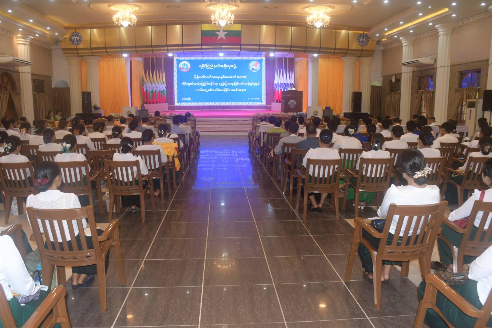 ရခိုင်ပြည်နယ်အစိုးရအဖွဲ့၏ကြီးကြပ်မှုဖြင့် ရခိုင်ပြည်နယ်ရွေးကောက်ပွဲကော်မရှင်အဖွဲ့ခွဲက ဦးဆောင်ဖွင့်လှစ်သည့် မြန်မာအီလက်ထရောနစ်မဲပေးစက်(MEVM)ကိုင်တွယ်အသုံးပြုခြင်း နည်းပြဆရာဖြစ် သင်တန်းဖွင့်ပွဲကို ဇူလိုင် ၇ ရက် နံနက်ပိုင်းက စစ်တွေမြို့ ဦးဥတ္တမခန်းမ၌ ကျင်းပသည်။