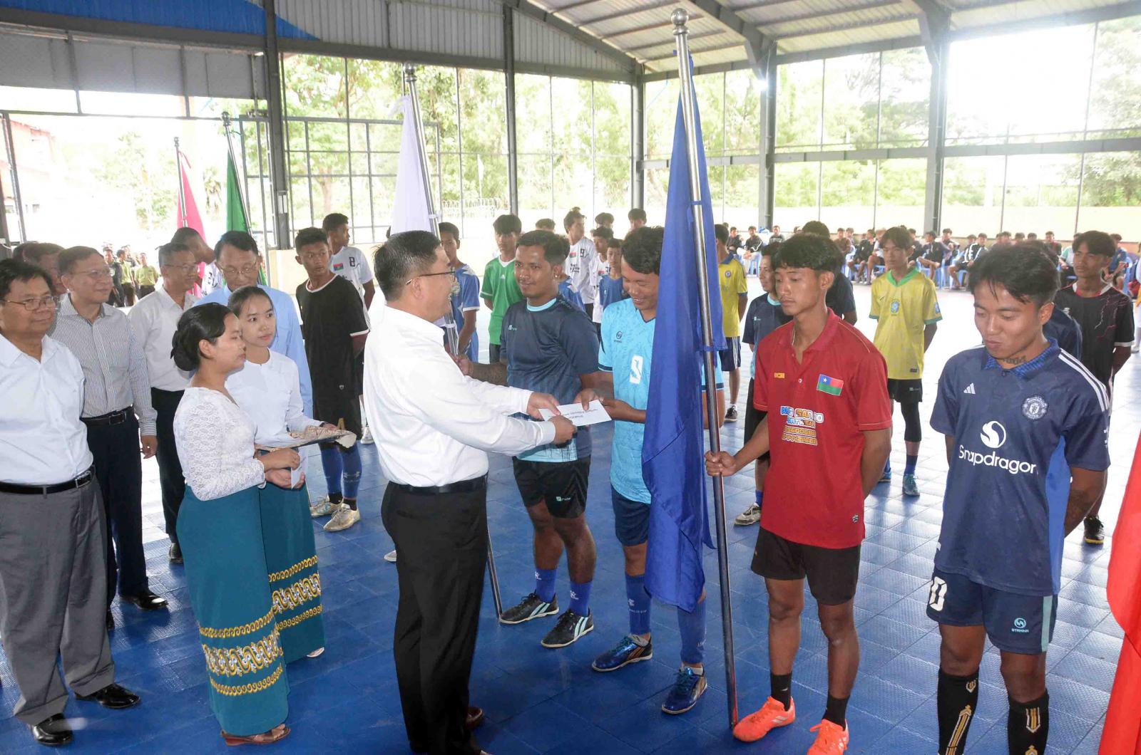 ထို့နောက် ဖူဆယ်ဘောလုံးပြိုင်ပွဲဝင်အသင်း ကစားသမားများက အားကစားသစ္စာအဓိဋ္ဌာန်များ ရွတ်ဆိုခဲ့ကြသည်။ ဆက်လက်၍ ပြည်နယ်ဝန်ကြီးချုပ်နှင့် တာဝန်ရှိသူများသည် ပြိုင်ပွဲဝင်အသင်းများအား ရင်းနှီးစွာလိုက်လံနှုတ်ဆက်ခဲ့ပြီး ပြည်နယ်ဝန်ကြီးချုပ်က ပြိုင်ပွဲဝင်အသင်းများသို့ ဂုဏ်ပြုချီးမြှင့်ငွေများ ပေးအပ်ခဲ့သည်။ ထို့နောက် ပြိုင်ပွဲဝင်အသင်းများ ကွင်းအတွင်းမှ ပြန်လည်ထွက်ခွာခဲ့ပြီး ဘင်ခရာအဖွဲ့မှ ဂုဏ်ပြုသီချင်းဖြင့် တီးမှုတ်ဖျော်ဖြေခဲ့ကာ အဆိုပါဘင်ခရာအဖွဲ့အား တိုင်းရင်းသားရေးရာဝန်ကြီးက ဂုဏ်ပြုချီးမြှင့်ငွေများ ပေးအပ်ခဲ့သည်။