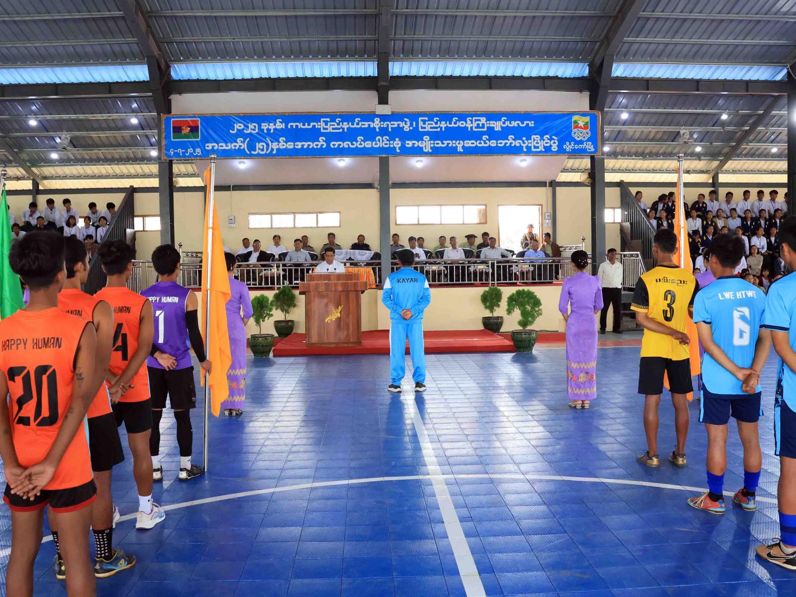 ကယားပြည်နယ်အစိုးရအဖွဲ့အနေဖြင့် နိုင်ငံတော်မှချမှတ်ထားသည့် အားကစားဆိုင်ရာမူဝါဒ လမ်းညွှန်ချက်များနှင့်အညီ ပြည်နယ်၏ အားကစားကဏ္ဍ ဘက်စုံတိုးတက်မြင့်မားစေရန်အတွက် အကောင်အထည်ဖော်ဆောင်ရွက်လျက်ရှိရာ ၂၀၂၅ ခုနှစ်၊ ပြည်နယ်ဝန်ကြီးချုပ်ဖလား အသက် ၂၅ နှစ်အောက် အမျိုးသားဖူဆယ်ဘောလုံးပြိုင်ပွဲဖွင့်ပွဲကို ဇူလိုင် ၄ ရက် နံနက်က လွိုင်ကော်မြို့၊ ပြည်နယ်အားကစားနှင့်ကာယပညာဦးစီးဌာန၊ ပြည်နယ်ဖူဆယ်ဘောလုံးအားကစားရုံ၌ ပြုလုပ်ရာ ပြည်နယ်ဝန်ကြီးချုပ် ဦးဇော်မျိုးတင်၊ ပြည်နယ်တရားသူကြီးချုပ်၊ ပြည်နယ်အစိုးရအဖွဲ့ဝင်များ၊ ဌာနဆိုင်ရာများ၊ ပြိုင်ပွဲဝင်အသင်းအုပ်ချုပ်သူ၊ နည်းပြများ၊ အားကစားသမားများ၊ ကျောင်းသား၊ ကျောင်းသူများနှင့် အားကစားဝါသနာရှင်များ တက်ရောက်အားပေးကြသည်။