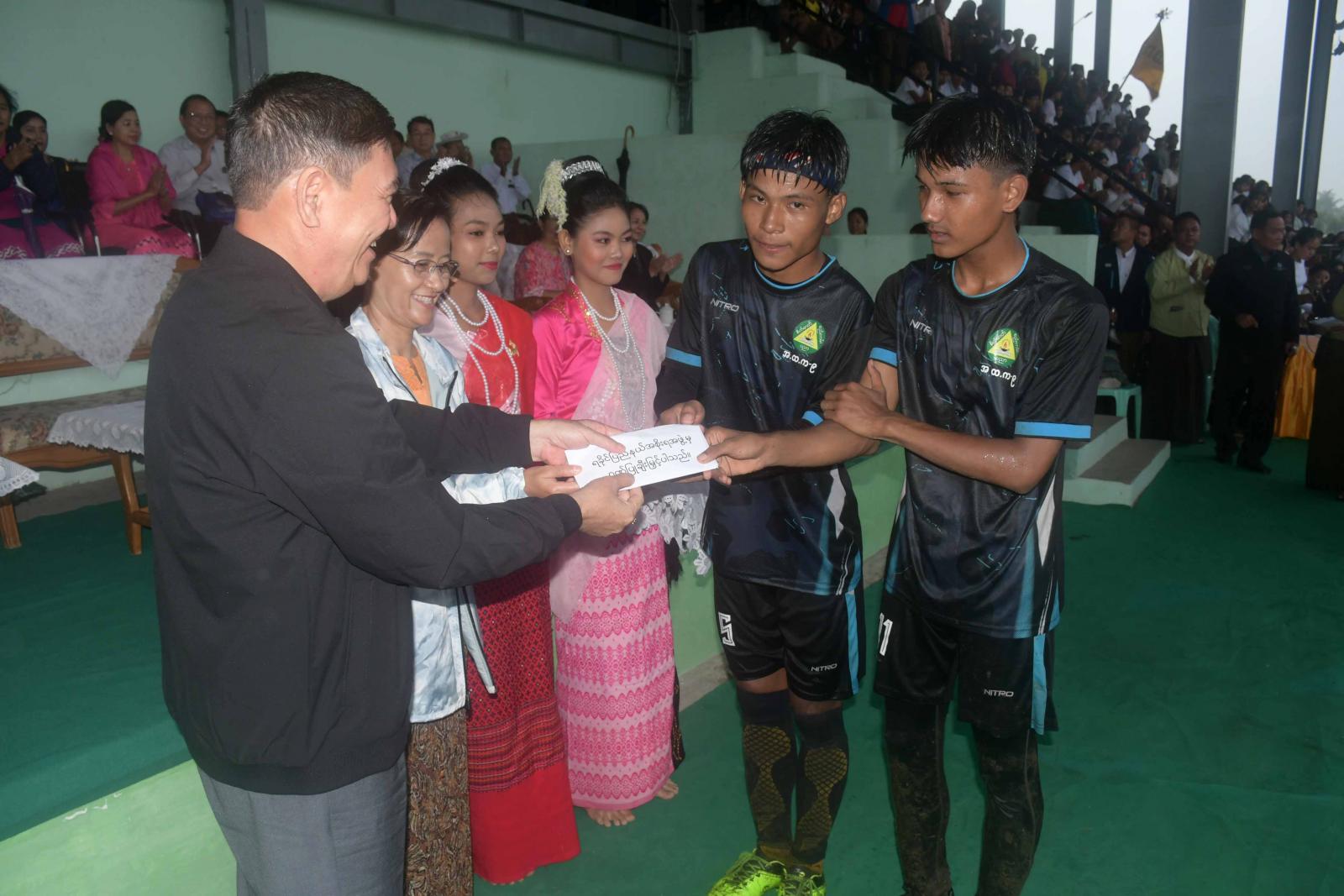 ထို့နောက် ရခိုင်ပြည်နယ်ဝန်ကြီးချုပ် ဦးထိန်လင်းနှင့် တာဝန်ရှိသူများက ပြိုင်ပွဲဝင် အားကစားအသင်းများ၊ ပန်းဖွားအဖွဲ့နှင့် ဘင်ခရာအဖွဲ့တို့အား ဂုဏ်ပြုချီးမြှင့်ငွေများ ပေးအပ်ခဲ့သည်။
