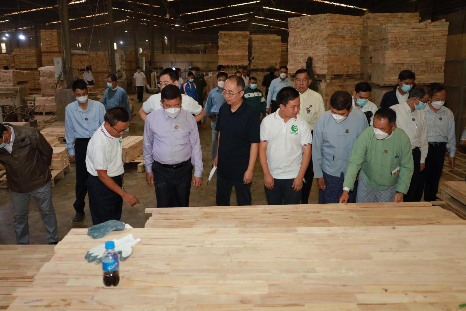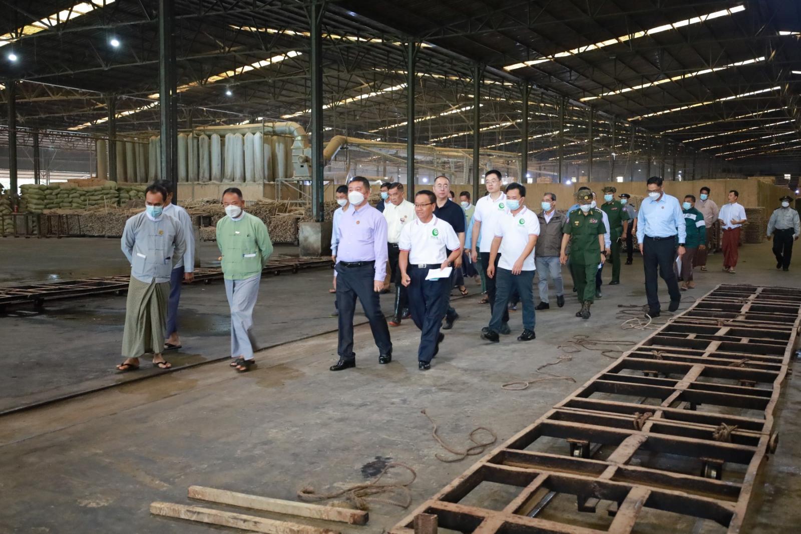 ဆက်လက်၍ ပြည်နယ်ဝန်ကြီးချုပ်နှင့်အဖွဲ့သည် မုဒုံမြို့နယ်၊ တာပသွန်ကျေးရွာအုပ်စု၊ Sen Hui Yuan Co. Ltd ရာဘာသစ်ခွဲသားစက်ရုံသို့ရောက်ရှိပြီး ဦးစွာ ရှင်းလင်းဆောင်တွင် စက်ရုံမှူး ဦးတင်မင်းက မွန်ပြည်နယ်ရင်းနှီးမြှုပ်နှံမှုကော်မတီမှ ခွင့်ပြုထားသော အမေရိကန်ဒေါ်လာ ၂.၃၂ သန်း ရာနှုန်းပြည့် နိုင်ငံခြားရင်းနှီးမြှုပ်နှံမှုလုပ်ငန်းဖြစ်သည့် Sen Hui Yuan Co. Ltd ရာဘာသစ်ခွဲသားစက်ရုံ လည်ပတ်မှုအခြေအနေများအား power point ဖြင့် ရှင်းလင်းတင်ပြ၍ ပြည်နယ်ဝန်ကြီးချုပ်က Sen Hui Yuan Co. Ltd ရာဘာသစ်ခွဲသားစက်ရုံလည်ပတ်မှုအတွက် မွန်ပြည်နယ်အတွင်း ကုန်ကြမ်းရရှိစေရေး၊ လျှပ်စစ်မီးရရှိမှုအခြေအနေနှင့် ရော်ဘာပင်အိုများအား ခုတ်လှဲပြီး အသေးစား၊ အငယ်စားနှင့် အလတ်စားစီးပွားရေး (MSME) လုပ်ငန်းများ ဖွံ့ဖြိုးတိုးတက်ဖို့အတွက် တန်ဖိုးမြှင့်ထုတ်ကုန်များအဖြစ် ရော်ဘာသစ်၊ ပရိဘောဂ၊ သစ်ပါးလွှာ၊ အထပ်သားလုပ်ငန်းများ ထုတ်လုပ်စေရေးတို့ကို မှာကြားသည်။ ဆက်လက်၍ ပြည်နယ်ဝန်ကြီးချုပ်နှင့်အဖွဲ့သည် Sen Hui Yuan Co. Ltd ရာဘာသစ်ခွဲသားစက်ရုံအတွင်း လှည့်လည်ကြည့်ရှုစစ်ဆေးရာ စက်ရုံမှူး ဦးတင်မင်းမှ စက်ရုံလည်ပတ်မှုနှင့် ရာဘာသစ်ခွဲသား အဆင့်ဆင့်ထုတ်လုပ်မှုအခြေအနေတို့အား လိုက်လံရှင်းလင်းပြသခဲ့ကြောင်း သိရှိရသည်။
