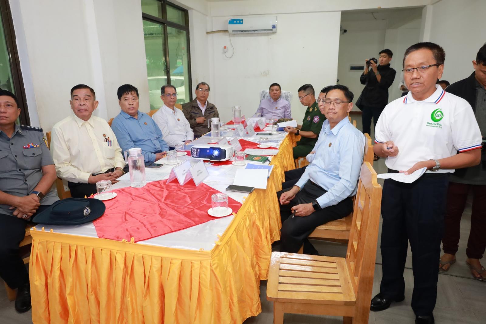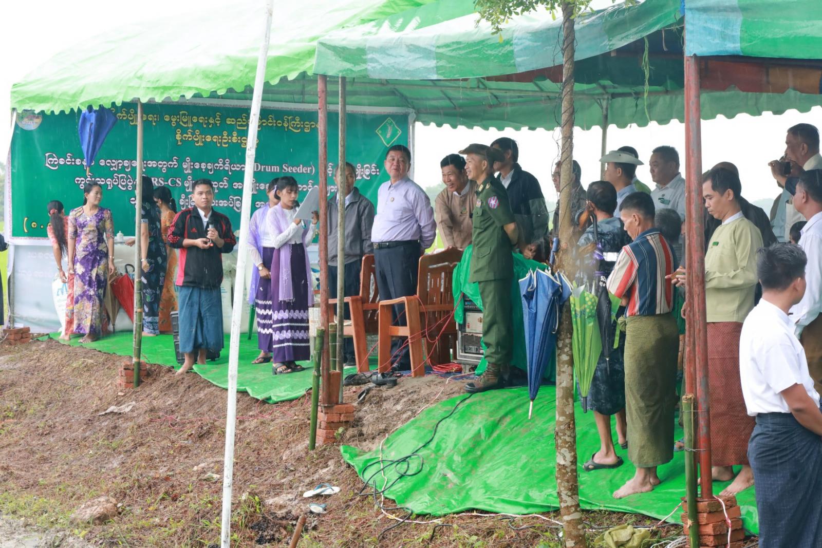 ထို့နောက် ပြည်နယ်ဝန်ကြီးချုပ်နှင့် ပြည်နယ်အစိုးရအဖွဲ့ဝင် ဝန်ကြီးများက RS-CS မျိုးစေ့ထုတ် အကျိုးဆောင်တောင်သူများအား သွင်းအားစုများ ချီးမြှင့်ပေးအပ်ခဲ့ပြီး ဒေသခံတောင်သူများမှ စိုက်ပျိုးရေအား နည်းလမ်းပေါင်းစုံမှ ရရှိနိုင်ရေး၊ ကုန်ထုတ်လမ်းဖောက်လုပ်ဆောင်ရွက်ပေးစေလိုမှု၊ ဆိုလာရေတင်စနစ် ဆောင်ရွက်ပေးစေလိုမှု၊ တိမ်ကောနေသော ချောင်းမြောင်းများ ပြန်လည်တူးဖော်နိုင်ရေး၊ စိုက်ပျိုးရေးအတွက် လိုအပ်သည့်သွင်းအားစုများအား သက်သာသောနှုန်းထားဖြင့် ဝယ်ယူရရှိလိုမှုအခြေအနေများအား တင်ပြတောင်းခံခဲ့ကြမှုအပေါ် ပြည်နယ်ဝန်ကြီးချုပ်က တာဝန်ရှိသူများနှင့် ပေါင်းစပ်ညှိနှိုင်းဖြည့်ဆည်းကာ လိုအပ်သည်များကို ဖြည့်ဆည်းဆောင်ရွက်ပေး၍ Seeder စနစ်ဖြင့် တိုက်ရိုက်မျိုးစေ့ချဆောင်ရွက်နေမှုနှင့် မိုးစပါးမျိုးစေ့ထုတ်စိုက်ခင်းများအား သဘာဝမြေဩဇာနှင့် ဓာတ်မြေဩဇာ အချိန်ကိုက် အချိုးကျကြဲပက်နေမှုအား ကွင်းဆင်းကြည့်ရှုအားပေးခဲ့ကြောင်း သိရှိရသည်။