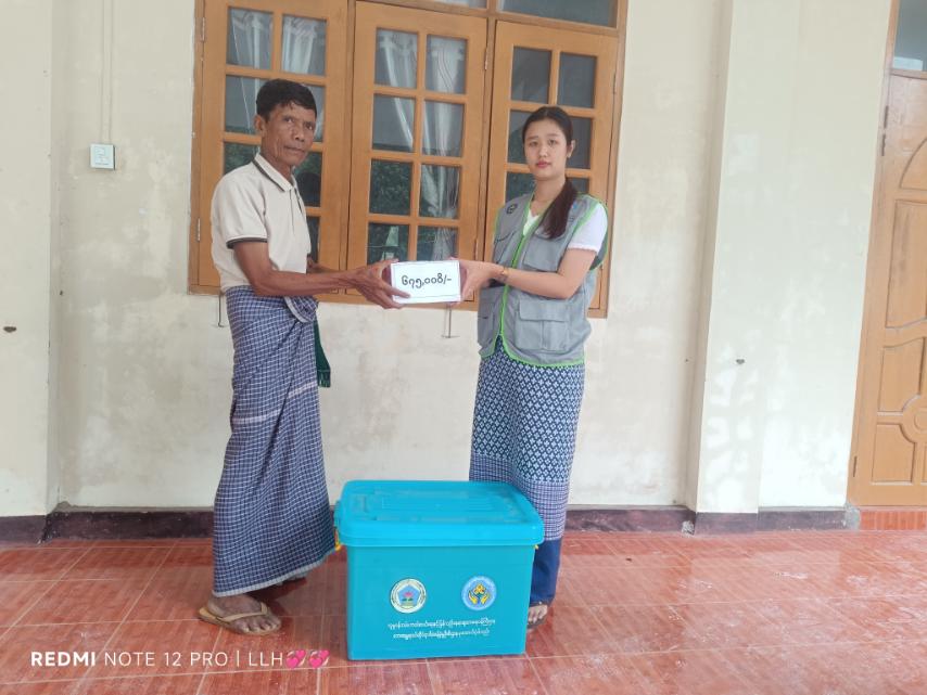 ထိုသို့ပေးအပ်ရာတွင် အိမ်ထောင်စု (၃)လုံးအတွက် အိမ်ဆောက်ပစ္စည်း ဖိုးငွေ(၆၀၀,၀၀၀ိ/-) ကျပ်နှင့်လူဦးရေ(၁၇)ဦးအတွက် ဆန်ရိက္ခာဖိုးငွေ(၇၅,၀၀ဝိ/-)ကျပ် စုစုပေါင်း ငွေကျပ် (၆၇၅,၀၀၀ိ/-)၊ အိမ်ထောင်စု(၃)စုစာ ကယ်ဆယ်ရေးပစ္စည်း(၁၆)မျိုး၊ တန်ဖိုးငွေ (၄၇၅၇၂၄/-) ကျပ်အား မီးဘေးသင့်ပြည်သူများကိုယ်စား သဲကုန်းကျေးရွာအုပ်ချုပ်ရေးမှူး ဦးကျော်ရွှေထံသို့ ပေးအပ်ခဲ့ကြောင်း သိရသည်။