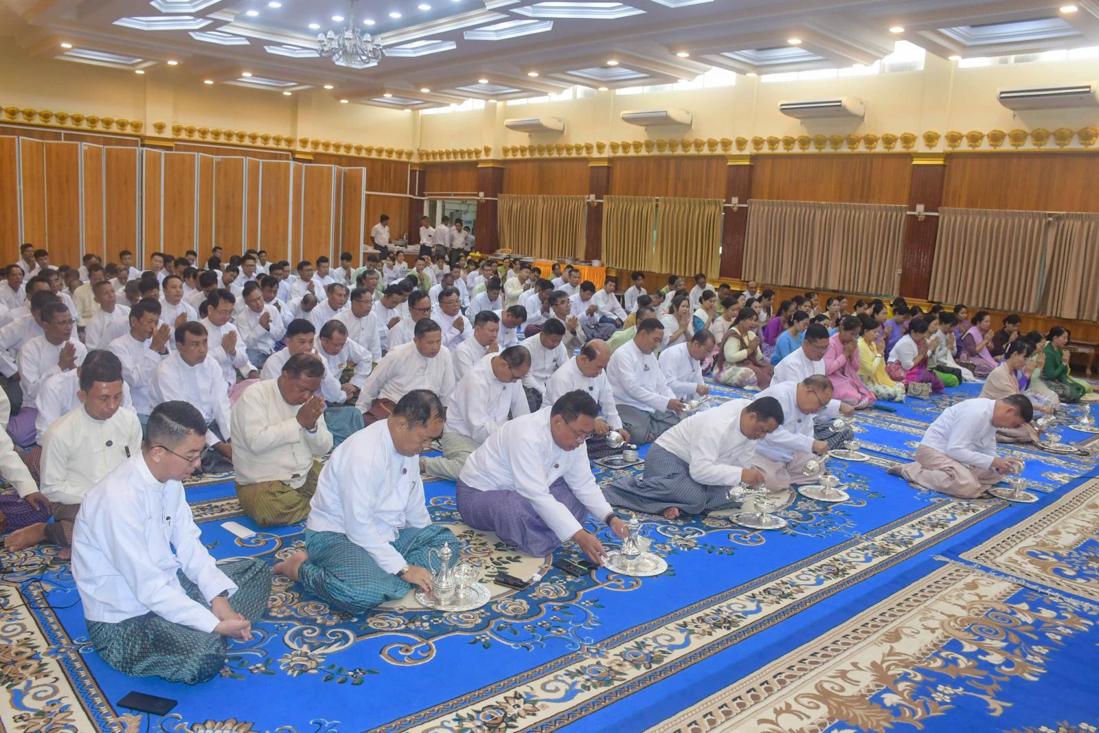 ဦးစွာ ရခိုင်ပြည်နယ်ဝန်ကြီးချုပ်သည် ဗုဒ္ဓဆင်းတုတော်အား ဖူးမြော်ကြည်ညိုကာ ဆွမ်း၊ သစ်သီး၊ ပန်း၊ ရေချမ်း၊ ဆီမီးများကပ်လှူပူဇော်သည်။