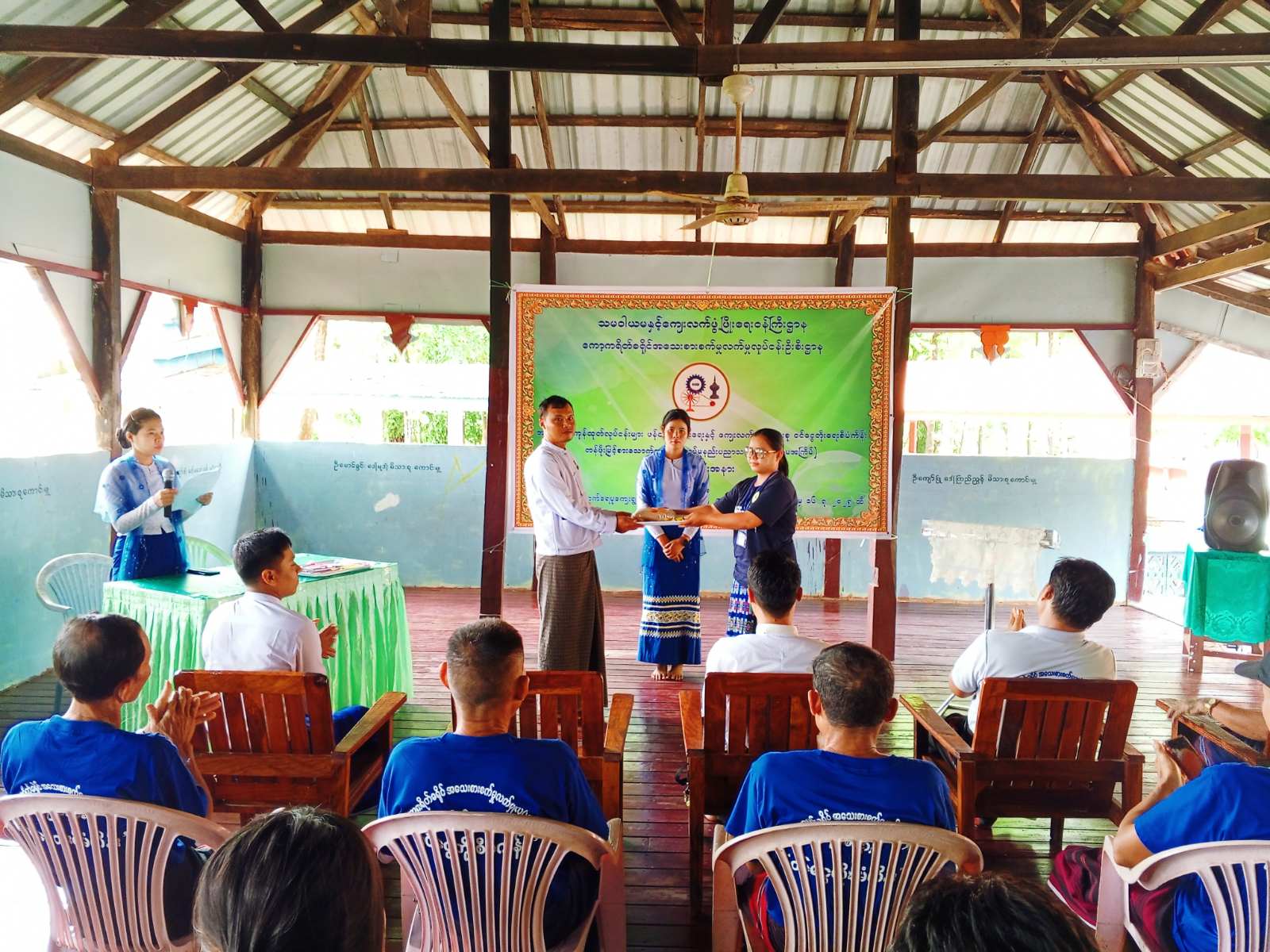 ဦးစွာ ကရင်ပြည်နယ်အသေးစားစက်မှုလက်မှုလုပ်ငန်းဦးစီးဌာန ဒုတိယညွှန်ကြားရေးမှူး ဦးစိုင်းမင်းထွန်းက အမှာစကားပြောကြားပြီး လုပ်ငန်းသုံးပစ္စည်းများပေးအပ်ရာ ကော့ကရိတ်ခရိုင် အသေးစားစက်မှုလက်မှုလုပ်ငန်းဦးစီးဌာန ခရိုင်ဦးစီးမှူး ဦးစောကြည်လင်းက သင်တန်းသုံး ကုန်ကြမ်း ပစ္စည်းများပေးအပ်သည်။