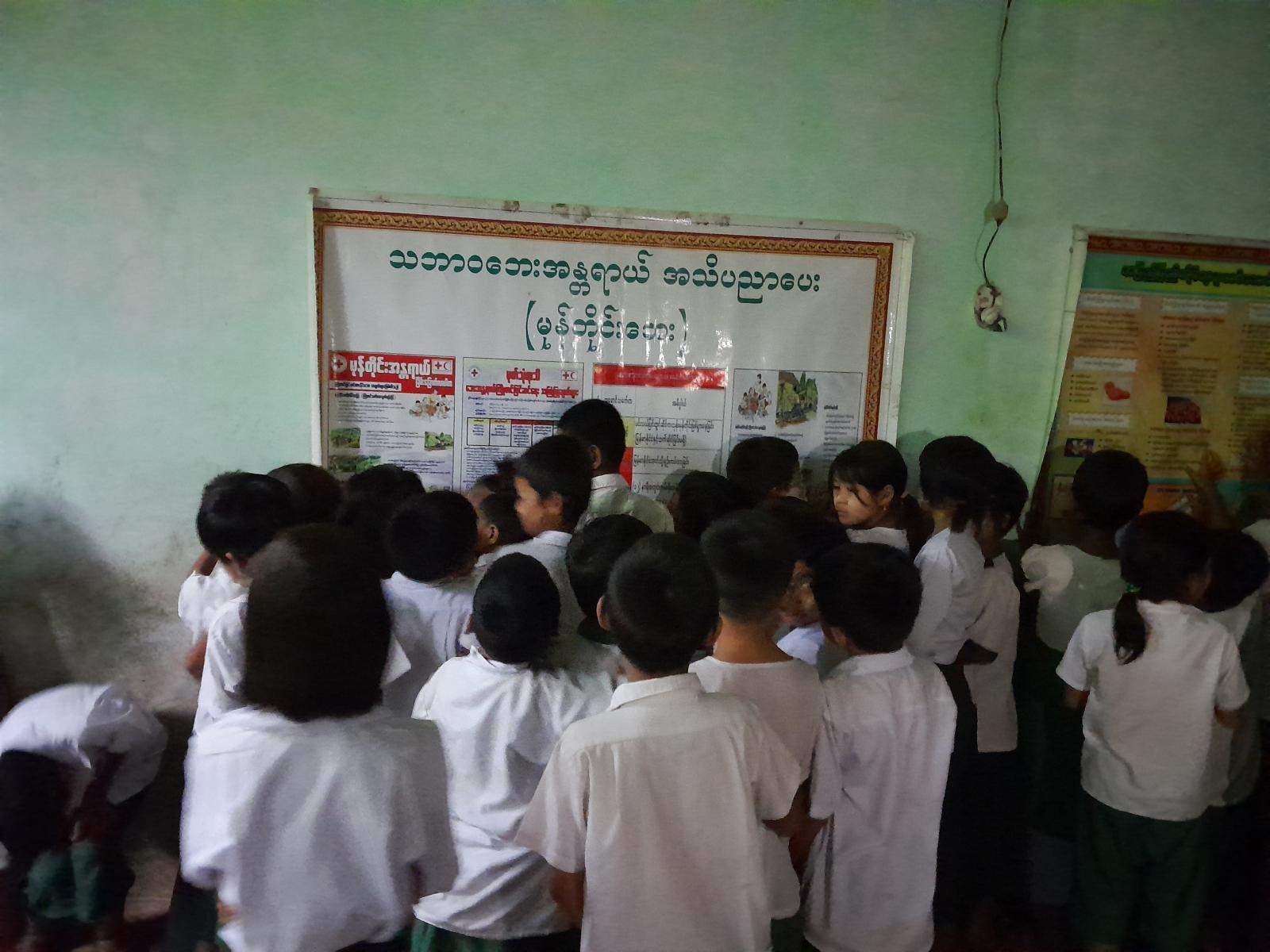 အဆိုပါ အသိပညာပေးလုပ်ငန်းတွင် ပြန်ကြားရေးနှင့်ပြည်သူ့ဆက်ဆံရေးဦးစီးဌာနမှ ကျောင်းသူ၊ ကျောင်းသားများ ဖတ်ရှုလေ့လာနိုင်ရန် ကလေးကဗျာများ၊ ရုပ်ပြပုံပြင်များ၊ စာစောင်များ စသည့်ကလေးများ အသိပညာတိုးပွားရေး စာအုပ်၊ စာပေများနှင့်၊ စာဖတ်ရှိန်မြှင့်တင်ရေး၊ မူးယစ်ဆေးဝါးအန္တရာယ်သတိပြုကာကွယ်ရေး စသည့် အသိပညာပေး နံရံကပ်စာစောင်များကို ခင်းကျင်းပြသရာ ကျောင်းသား၊ ကျောင်းသူများမှ စိတ်ပါ၀င်စားစွာ ကြည့်ရှုလေ့လာခဲ့ကြောင်း သိရသည်။