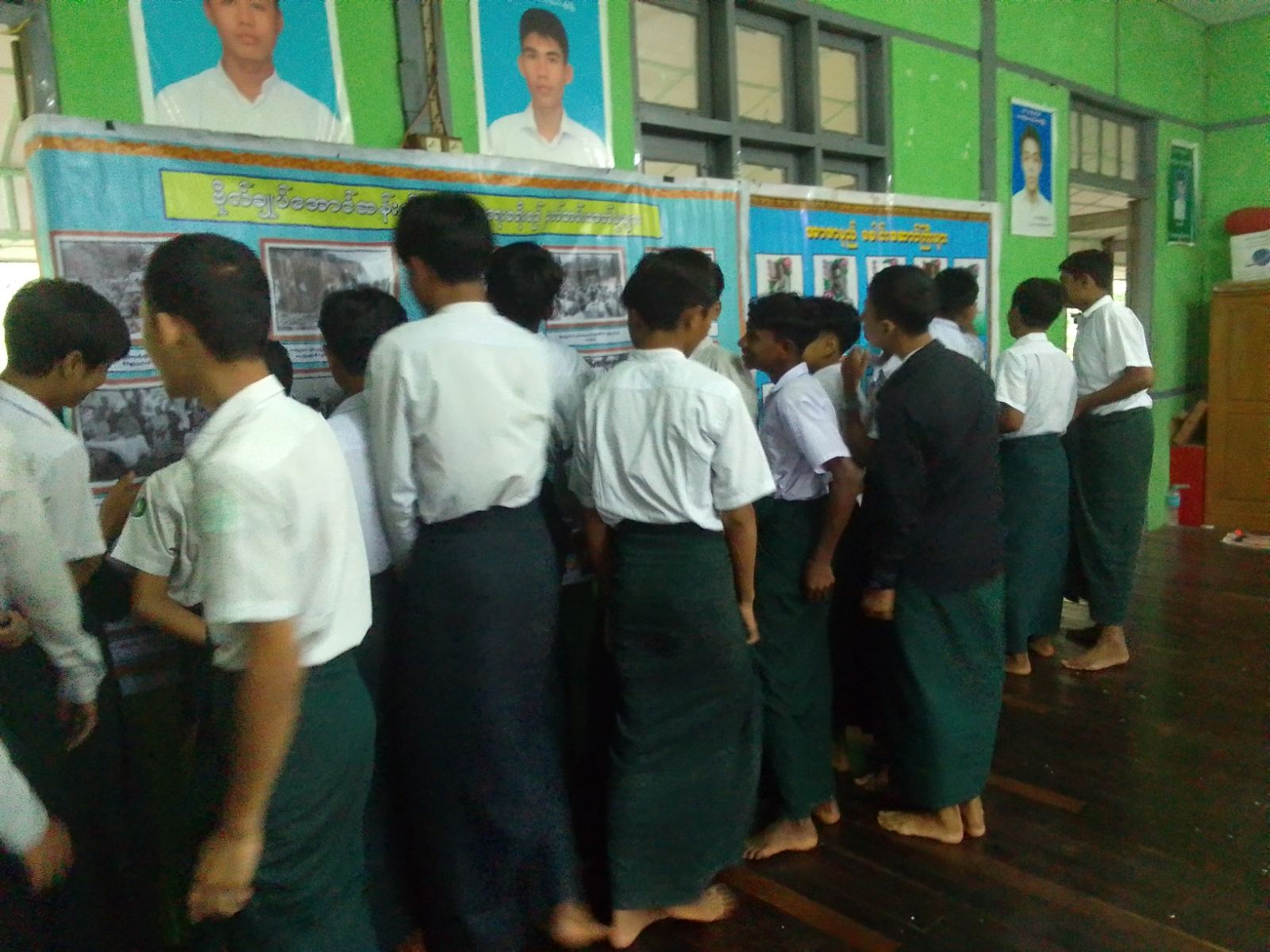 ထို့နောက် မော်လမြိုင်ခရိုင် ပြန်ကြားရေးနှင့်ပြည်သူ့ဆက်ဆံရေးဦးစီးဌာနမှ အာဇာနည်ကိုးဦး အတ္ထုပ္ပတ္တိဆိုင်ရာ အကြောင်းအရာများ၊ နယ်ချဲ့ဆန့်ကျင်ရေးသူရဲကောင်းများနှင့် အာဇာနည်နေ့ဖြစ်ပေါ်လာပုံ သမိုင်းကြောင်းများပါဝင်သော အသိပညာပေး နံရံကပ်စာစောင်များကို ပြသဆောင်ရွက်ထားရာ ကျောင်းသား၊ ကျောင်းသူများက စိတ်ဝင်စားစွာ ကြည့်ရှုလေ့လာမှတ်သားခဲ့ကြောင်း သိရသည်။
