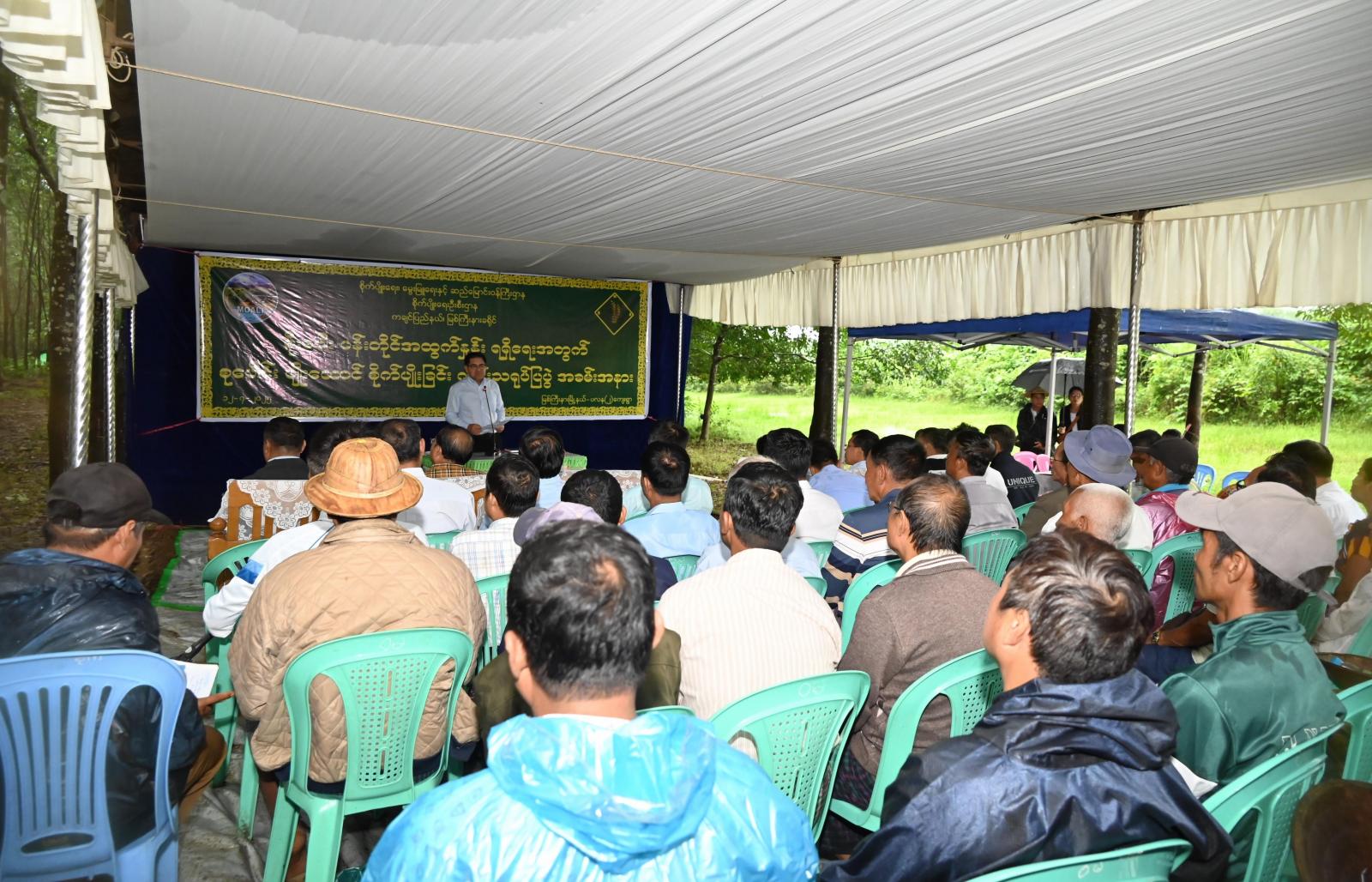 ထိုသို့တွေ့ဆုံစဉ် ပြည်နယ်ဝန်ကြီးချုပ်က စိုက်ပျိုးသည့် စပါးခင်းများ အထွက်တိုးပြီး ပန်းတိုင်အထွက်နှုန်းရရှိရေးအတွက် မျိုး၊ မြေ၊ ရေ၊ နည်းစနစ်များ ပေါင်းစပ်စိုက်ပျိုးရမည်ဖြစ်သကဲ့သို့ ကောက်စိုက်ရာတွင်လည်း ကောက်ကွက်ပြည့်မီရေးသည် အဓိကဖြစ်ပါကြောင်း၊ ကချင်ပြည်နယ်အတွင်း စာရင်းဇယားများအရ ၂၀၂၄-၂၀၂၅ ခုနှစ်တွင် စပါးစိုက်ဧက ၄၇၄၄၇၇ ရှိသည့်အနက် ဘောင်ပျိုးစနစ်ဖြင့် ဧက ၇၅၀၀၀ ကျော်တွင် တစ်ဧကအထွက်နှုန်း (၈၇ ဒဿမ ၉၁) တင်းရရှိခဲ့သည့်အတွက် ရိုးရိုးပျိုးစိုက်ပျိုးခြင်းထက် တစ်ဧကအထွက်နှုန်းပျမ်းမျှ ၂၀ တင်း ပိုမိုထွက်ရှိသည်ကို တွေ့ရှိရပါကြောင်း၊ သို့ဖြစ်ပါ၍ တောင်သူများအနေဖြင့် ဒေသတွင်းဝမ်းစာဖူလုံပိုလျှံစေမည့်အပြင် ဝင်ငွေတိုးပွားရေးအတွက် ပန်းတိုင်အထွက်နှုန်းရရှိအောင် နည်းစနစ်မှန်ကန်စွာစိုက်ပျိုးကြရန် လိုအပ်ပါကြောင်း တိုက်တွန်းပြောကြားကာ မိုးစပါးစိုက်တောင်သူများထံ ဓာတ်မြေသြဇာအိတ်များနှင့် ရွက်ဖျန်းအားတိုးဆေးများ၊ ပိုးသတ်ဆေးများကို ထောက်ပံ့ပေးအပ်ခဲ့သည်။