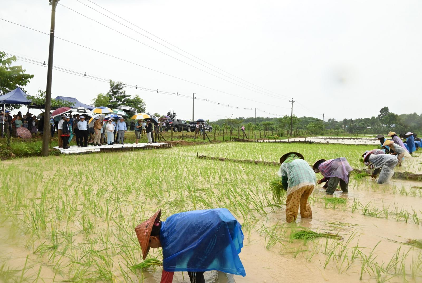 ထို့နောက် ပြည်နယ်ဝန်ကြီးချုပ်နှင့် အဖွဲ့ဝင်များသည် ဒေသခံတောင်သူများနှင့်အတူ မိုးစပါးစိုက်ခင်းအတွင်း ပန်းတိုင်အထွက်နှုန်းရရှိရေး၊ ကောက်ကွက်ပြည့်မီရေးအတွက် တောင်သူအသိပညာပေးသည့်အနေဖြင့် ကောက်စိုက်သမများ၏ စုပေါင်းပျိုးထောင်စိုက်ပျိုးခြင်း ကွင်းသရုပ်ပြ စိုက်ပျိုးမှုကို ကြည့်ရှုအားပေးခဲ့ကြသည်။