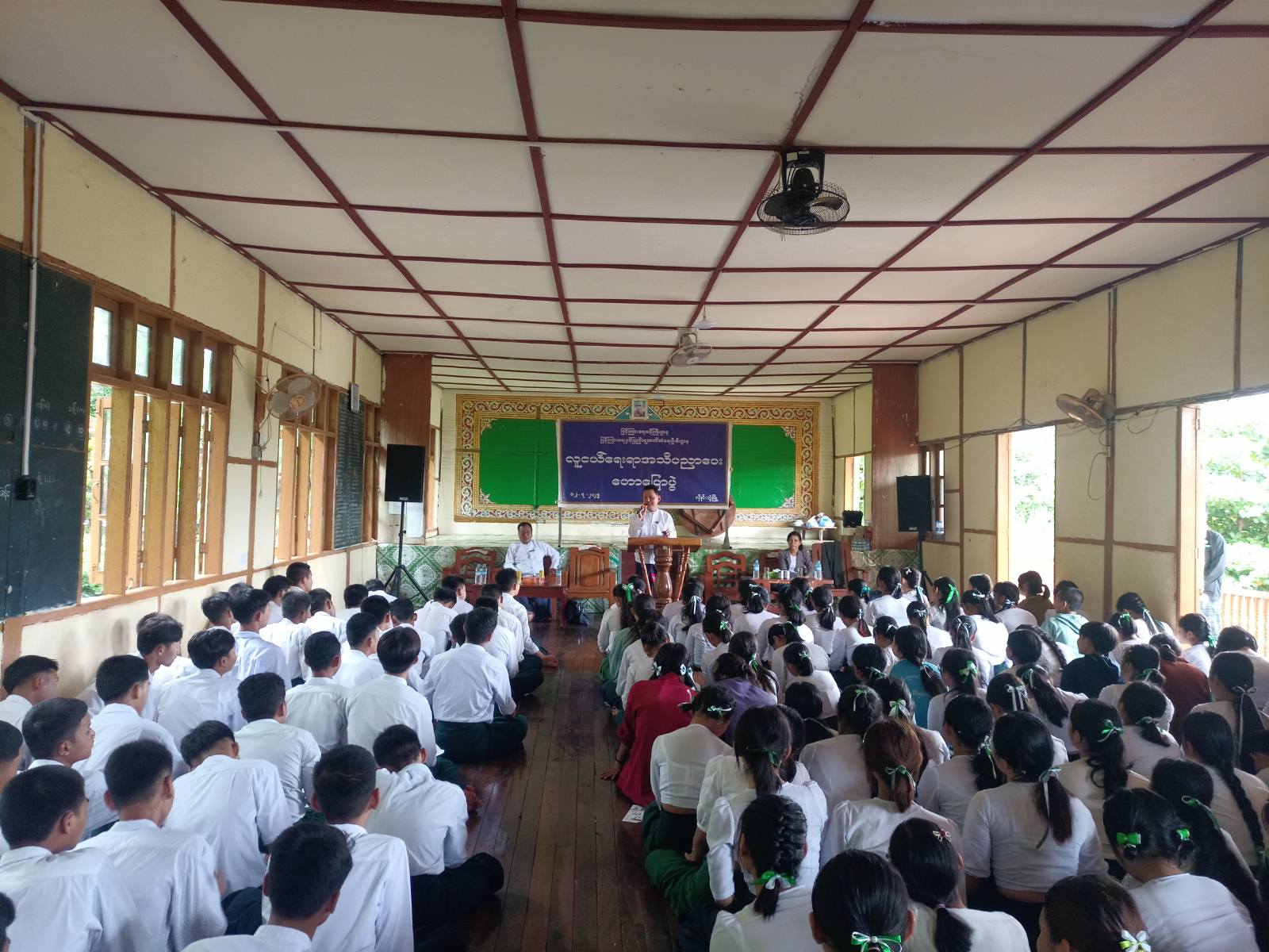 ဆက်လက်၍ မြို့နယ်လူမှုဝန်ထမ်းဦးစီးဌာနမှ မြို့နယ်ဦးစီးမှူး ဦးစိုင်းရန်နောင်က ကလေးသူငယ်အရေးဆိုင်ရာ ဥပဒေများအကြောင်း၊ မြို့နယ်ဥပဒေဆိုင်ရာအထောက်အကူပေးရေးအဖွဲ့ ဥက္ကဋ္ဌ ဦးအောင်ငွေက ကျောင်းသားလူငယ်များအနေဖြင့် သိထားကြရမည့် ဥပဒေများနှင့် ပြစ်မှု၊ပြစ်ဒဏ်များအကြောင်း၊ မြို့နယ်မူးယစ်ဆေးဝါးဆန့်ကျင်ရေးအသင်းဥက္ကဋ္ဌ ဦးဌေးဝင်းက မူးယစ်ဆေးများ၏ ဆိုးကျိုးအန္တရာယ်များ၊ ပူးပေါင်းကာကွယ်တိုက်ဖျက်ကြရမည့်အကြောင်းများကို အသိပညာပေး ဟောပြောခဲ့ကြသည်။