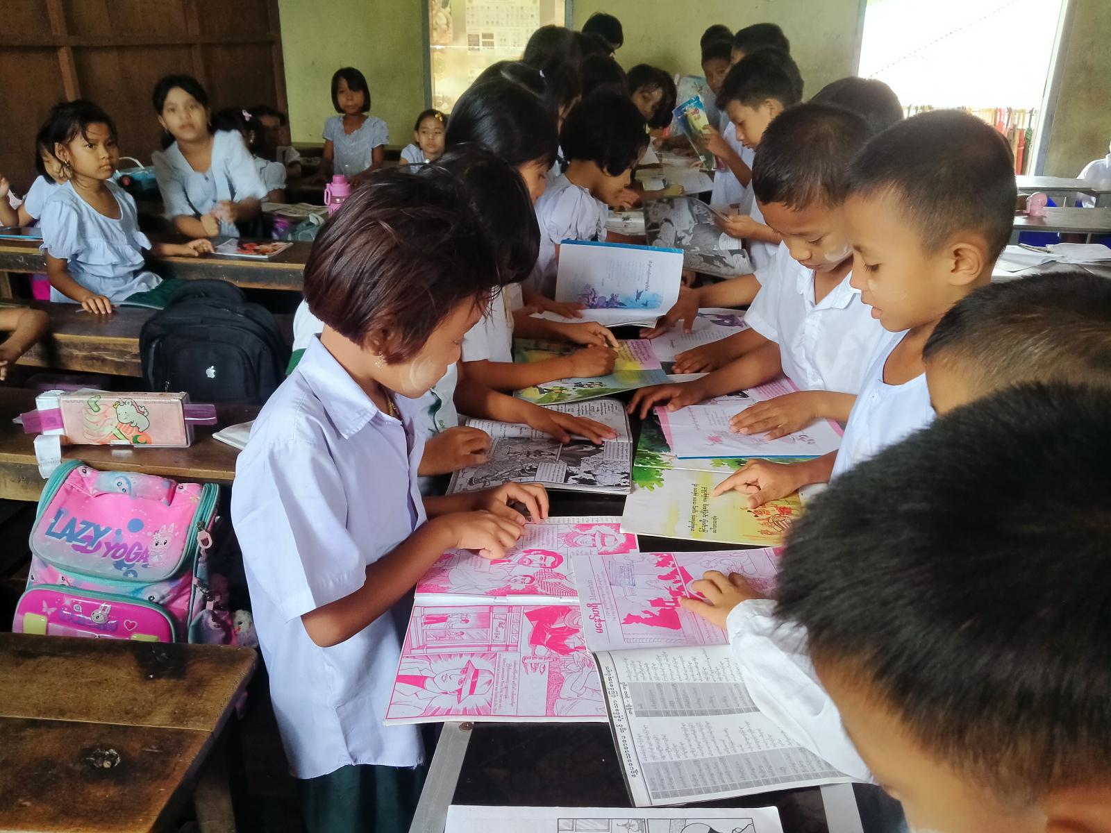 ထို့နောက် ကျောင်းအုပ်ဆရာမကြီးက ကျေးဇူးတင်စကားပြောကြားပြီး ပြန်ကြားရေးနှင့်ပြည်သူ့ဆက်ဆံရေးဦးစီးဌာနမှ ကျောင်းသား၊ ကျောင်းသူများ ဖတ်ရှုလေ့လာနိုင်ရန် ရုပ်ပြပုံပြင်များ၊ စာစောင်များစသည့် ကလေးများအသိပညာတိုးပွားရေး စာအုပ်စာပေများ၊ စာဖတ်ရှိန်မြှင့်တင်ရေးတို့နှင့်ပတ်သက်သည့် ဆောင်း ပါး၊ ကဗျာ၊ ကာတွန်း သိမှတ်ဖွယ်ရာများ စသည့်အသိပညာပေး နံရံကပ်စာစောင်များဓာတ်ပုံများကိုခင်းကျင်းပြသခဲ့ရာ ကျောင်းသား၊ ကျောင်းသူများက စိတ်ပါ ၀င်စားစွာကြည့်ရှုလေ့လာခဲ့ကြောင်း သိရသည်။