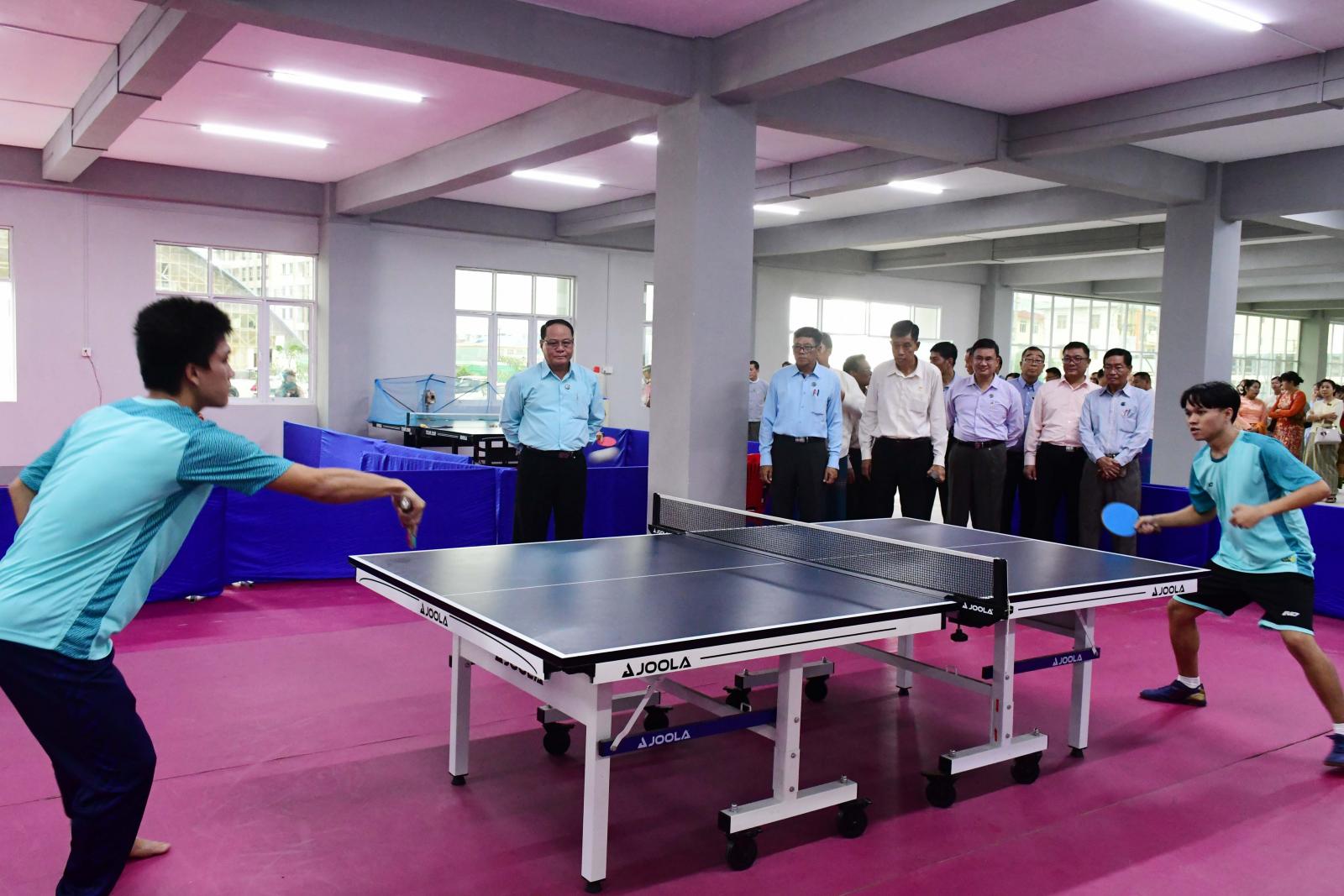 ဆက်လက်၍ ကရင်ပြည်နယ်လူငယ်ရေးရာကော်မတီ၏ကြီးကြပ်မှုဖြင့် ပြည်နယ်စားပွဲတင်တင်းနစ်ဆပ်ကော်မတီနှင့် ဘားအံတက္ကသိုလ်တို့ပူးပေါင်းဖွင့်လှစ်သည့် စားပွဲတင်တင်းနစ်ကစားနည်းသင်တန်း(၁/၂၀၂၅)ဖွင့်ပွဲကို နံနက် ၁၀ နာရီက ဘားအံတက္ကသိုလ် ဘွဲ့နှင်းသဘင်ခန်းမအနီးရှိ ကရင်ပြည်နယ်လူငယ်စင်တာ အစည်းအဝေးခန်းမ၌ ကျင်းပ ရာ ကရင်ပြည်နယ်လူငယ်ရေးရာကော်မတီဥက္ကဋ္ဌ ပြည်နယ်ဝန်ကြီးချုပ်က လူငယ်ရေးရာကိစ္စရပ်များကို တစ်နေရာ တည်းတွင်ဆောင်ရွက်နိုင်ရန်အတွက် ကရင်ပြည်နယ်လူငယ်စင်တာကို လူငယ်အများစု စုဝေးတည်ရှိရာ ဘားအံ တက္ကသိုလ်အနီးတွင်ဆောက်လုပ်ပေးထားပြီး အနီးတဝိုက်တွင်လည်း ဖူဆယ်ဘောလုံးကွင်း၊ GYM ခန်းမ၊ စားပွဲတင် တင်းနစ်အားကစားခန်းမ၊ အောင်သံလွင်အားကစားကွင်းတို့ကို ဆောက်လုပ်ပေးထားကာ လူငယ်များကိုလေ့ကျင့် ပျိုးထောင်နိုင်သည့် ပတ်ဝန်းကျင်ကောင်းဖြစ်အောင် စီစဉ်ဆောင်ရွက်ပေးထားကြောင်း၊ သင်တန်းတက်ရောက်ကြမည့် မောင်တို့မယ်တို့အားလုံး ကြိုးကြိုးစားစားသင်ကြားလေ့ကျင့်ကြပြီး မျိုးဆက်သစ်အားကစားသမားကောင်းများ ပေါ်ထွန်းလာအောင် ကြိုးစားကြစေလိုကြောင်း ပြောကြားပြီး စုစုပေါင်းငွေကျပ် ၂၆၈၀၀၀၀ တန်ဖိုးရှိ အားကစားပစ္စည်းများနှင့်အားကစားဝတ်စုံများကို သင်တန်းသား၊သင်တန်းသူများထံ ပေးအပ် ချီးမြှင့်သည်။