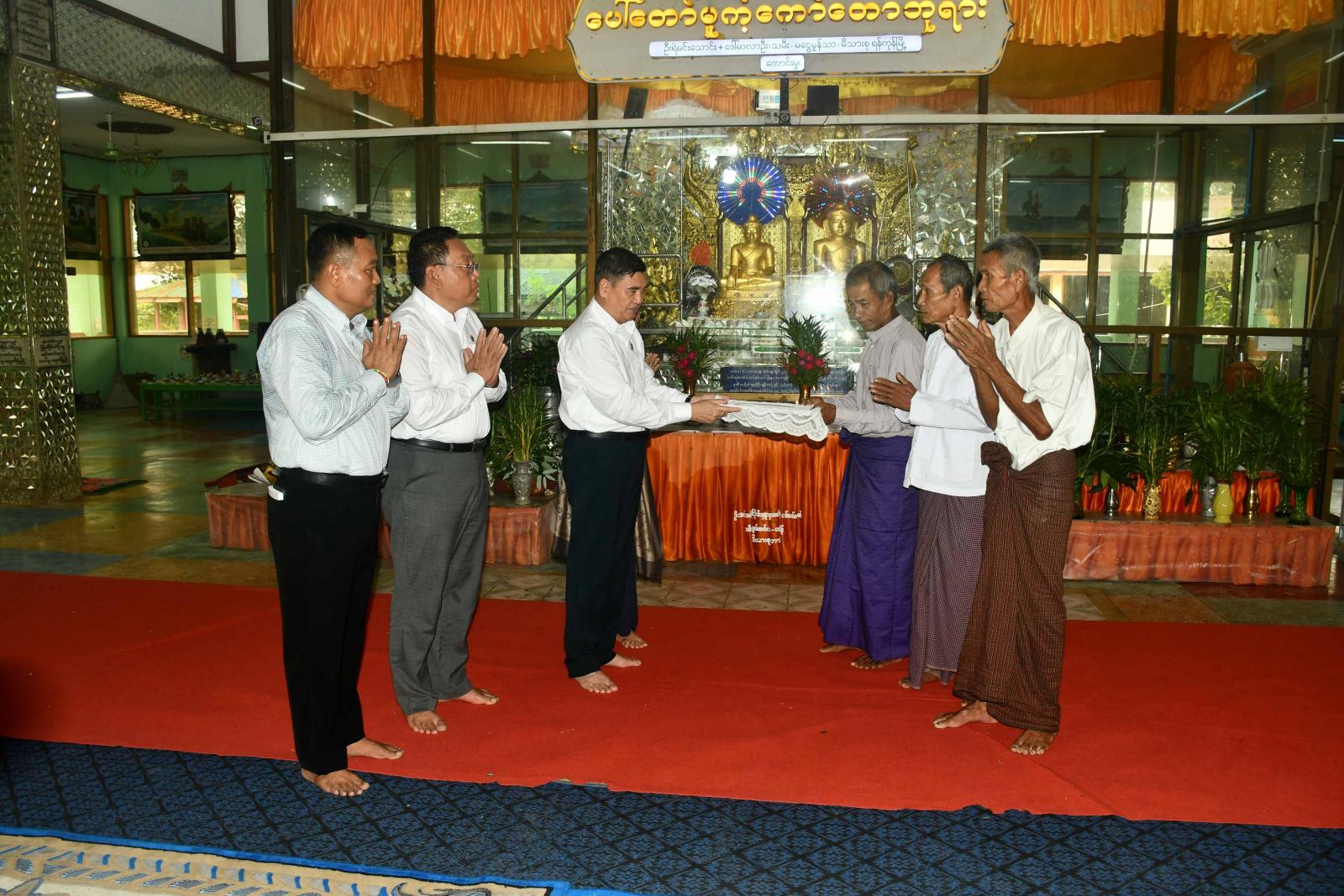 နေ့လယ်ပိုင်းတွင် ရခိုင်ပြည်နယ်ဝန်ကြီးချုပ်နှင့်အဖွဲ့သည် ကျောက်ဖြူမြို့၊ နဂါးကျောင်း ပရိယတ္တိစာသင်တိုက်၌ ကျောက်ဖြူမြို့ပေါ်ရှိ ဆရာတော်ကြီးများအား သွားရောက်ဖူးမြော်ကြပြီး ဝါဆိုသင်္ကန်း၊ ဆွမ်းဆန်တော်၊ ဆီနှင့်လှူဖွယ်ဝတ္ထုပစ္စည်းများ ဆက်ကပ်လှူဒါန်းကြရာ နဂါးကျောင်းတိုက် ဦးစီးပဓာနနာယက နိုင်ငံတော်ဩဝါဒါစရိယ၊ အဂ္ဂမဟာပဏ္ဍိတ၊ အဘိဓဇမဟာရဋ္ဌဂုရုဘဒ္ဒန္တ စက္ကိန္ဒာဘိဝံသထံမှ ပြည်နယ်ဝန်ကြီးချုပ်အမှူးပြုသော ဧည့်ပရိတ်သတ်များက ငါးပါးသီလခံယူ ဆောက်တည်ကြသည်။ ဆက်လက်၍ ပြည်နယ်ဝန်ကြီးချုပ်နှင့် ပြည်နယ်အစိုးရ အဖွဲ့ဝင်များ၊ ဌာနဆိုင်ရာတာဝန်ရှိသူများက ဆရာတော်ကြီးများထံသို့ ဝါဆိုသင်္ကန်း၊ ဆွမ်းဆန် တော်၊ ဆီနှင့်လှူဖွယ်ဝတ္ထုပစ္စည်းများ ဆက်ကပ်လှူဒါန်းကြပြီး မြို့နယ်သံဃနာယကအဖွဲ့ဥက္ကဋ္ဌ၊ ဓမ္မဆာယာကျောင်းတိုက်ဆရာတော် ဘဒ္ဒန္တစန္ဒာဝရထံမှ အနုမောဒနာတရားနာယူ၍ လှူဒါန်းမှု အစုစုအတွက် ရေစက်သွန်းချအမျှပေးဝေခဲ့ကြသည်။