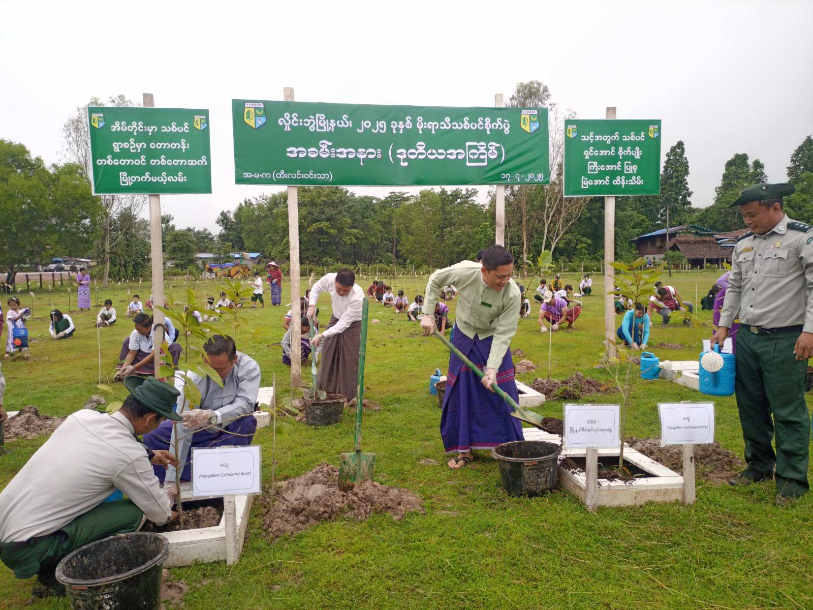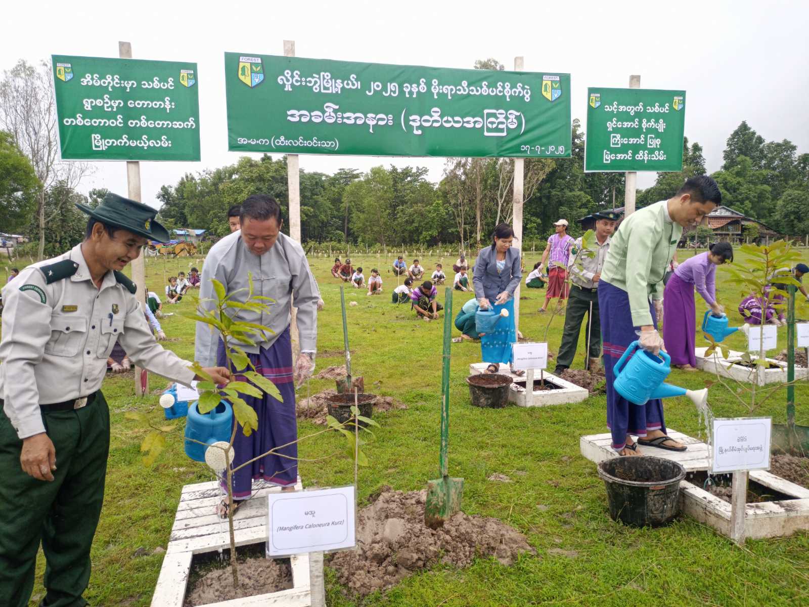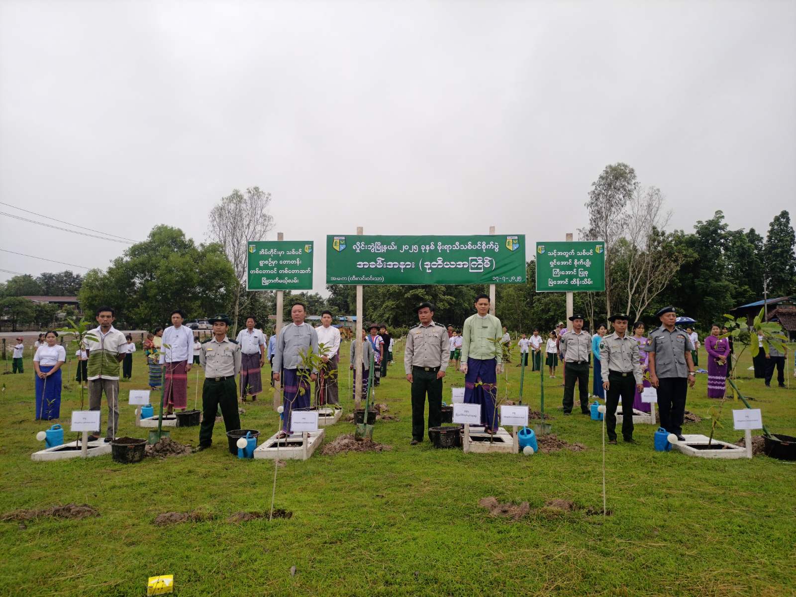 ထို့နောက် အခမ်းအနားသို့ တက်ရောက်လာကြသော လှိုင်းဘွဲမြို့နယ် စီမံအုပ်ချုပ်ရေးအဖွဲ့ဥက္ကဋ္ဌနှင့် အဖွဲ့ဝင်များ၊ မြို့နယ်ဌာနဆိုင်ရာတာဝန်ရှိသူများ၊ ဝန်ထမ်းများ၊ မြို့နယ်မိခင်နှင့်ကလေး စောင့်ရှောက်ရေးအသင်းနှင့် မြို့နယ်အမျိုးသမီးရေးရာအဖွဲ့ဝင်များ၊ ဆရာ၊ဆရာမများ၊ ကျောင်းသား၊ ကျောင်းသူများနှင့် ရွာသူ၊ ရွာသားများက ကျွန်း၊ မဲဇလီ၊ ကုက္ကိုလ်၊ စိန်ပန်း၊ မအူစသည့် သစ်မျိုး(၅)မျိုး၊ အပင်စုစုပေါင်း(၈၅၀)ပင်ကို စုပေါင်းစိုက်ပျိုးခဲ့ကြသည်။