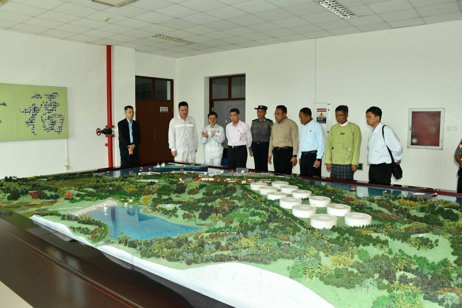 ထို့နောက် ပြည်နယ်ဝန်ကြီးချုပ်နှင့်အဖွဲ့ ကျောက်ဖြူမြို့နယ် မဒဲကျွန်းရှိ အရှေ့တောင် အာရှ ရေနံနှင့်သဘာဝဓာတ်ငွေ့ပိုက်လိုင်းစီမံကိန်းသို့ သွားရောက်ကြည့်ရှုကြရာ စီမံကိန်း တာဝန်ခံနှင့် တာဝန်ရှိသူများက လိုက်လံရှင်းလင်းပြသကြသည်။ ဦးစွာ စီမံကိန်းတာဝန်ခံနှင့် တာဝန်ရှိသူများက ရေနံနှင့် သဘာဝဓာတ်ငွေ့များအား ပိုက်လိုင်းများဖြင့် ပို့လွှတ်ပေးနေမှု၊ စီမံကိန်း ဧရိယာအတွင်း လုံခြုံရေးကရိယာများ တတ်ဆင်ထားရှိမှု၊ မီးဘေးလုံခြုံရေးအတွက် စီမံထားရှိမှု တို့ကို လိုက်လံရှင်းလင်း ပြသကြသည်။ ဆက်လက်၍ ပြည်နယ်ဝန်ကြီးချုပ်နှင့်အဖွဲ့သည် ရေနံတင်သင်္ဘောပေါ်မှရေနံများအား သိုလှောင်ကန်သို့ ပို့လွှတ်နေမှုတို့ကို သွားရောက်ကြည့်ရှု စစ်ဆေးကြပြီး ရေနံနှင့်သဘာဝ ဓာတ်ငွေ့ပိုက်လိုင်းစီမံကိန်းရုံး အစည်းအဝေးခန်းမ၌ စီမံကိန်းမှ တာဝန်ရှိသူများနှင့်တွေ့ဆုံ၍ ရေနံနှင့်သဘာဝဓာတ်ငွေ့များနှစ်စဉ်ပို့လွှတ်ပေးနေမှု၊ ရေနံတင် သင်္ဘောများရောက်ရှိမှုအခြေအနေများ၊ ဒေသခံပြည်သူများအလုပ်အကိုင် အခွင့်အလမ်းများရရှိ နေမှုအခြေအနေများ၊ ဒေသတွင်းလူမှု စီးပွားအကျိုးပြုလုပ်ငန်းများ ဆောင်ရွက်ပေးနေမှုအခြေ အနေများစသည့်ကဏ္ဍများနှင့် ပတ်သက်၍ ဆွေးနွေးခဲ့ကြသည်။