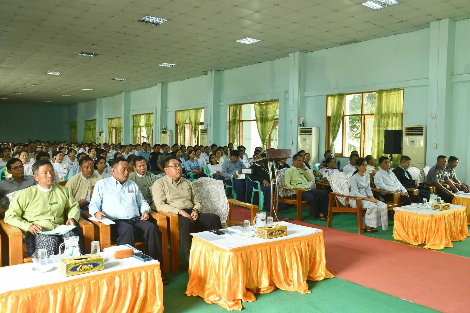 ထို့နောက် ပြည်နယ်ဝန်ကြီးချုပ်နှင့်အဖွဲ့သည် ကျောက်ဖြူမြို့၊ ရမ္မာဝတီခန်းမ၌ ခရိုင်နှင့် မြို့နယ်အဆင့် ဌာနဆိုင်ရာများနှင့်တွေ့ဆုံပွဲသို့ တက်ရောက်ကြသည်။ တွေ့ဆုံပွဲတွင် ကျောက်ဖြူခရိုင် စီမံအုပ်ချုပ်ရေးအဖွဲ့ ဥက္ကဋ္ဌ ဦးနေမင်းသူက ကျောက်ဖြူခရိုင်၏ ဒေသဆိုင်ရာ အချက်အလက် များအား ရှင်းလင်းတင်ပြပြီး ပြည်နယ်လူမှုရေးရာဝန်ကြီးနှင့် ပြည်နယ်အစိုးရ အဖွဲ့အတွင်းရေးမှူး တို့က နိုင်ငံတော်အစိုးရမှ ညွှန်ကြားချက်များ၊ ကျောက်ဖြူဖွံ့ဖြိုးတိုးတက်ရေးအတွက် ဆောင်ရွက် မည့်အစီအမံများ၊ အထွေထွေရွေးကောက်ပွဲအတွက် ဆောင်ရွက်နေမှုများနှင့် ဌာနဆိုင်ရာများ သက်သာချောင်ချိရေးအတွက် ဆောင်ရွက်နေမှုအခြေအနေများကို ရှင်းလင်းတင်ပြကြသည်။