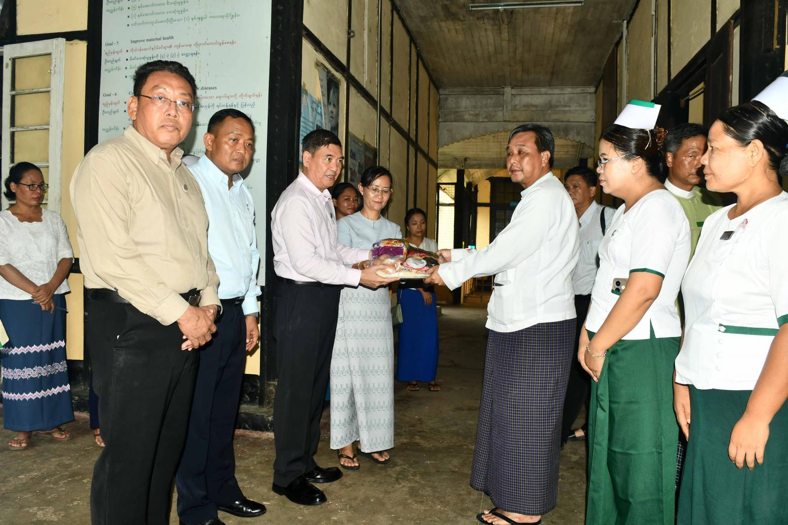 ထို့နောက် ပြည်နယ်ဝန်ကြီးချုပ်နှင့်အဖွဲ့သည် ကျောက်ဖြူခရိုင် ပြည်သူ့ဆေးရုံကြီး သို့သွားရောက်ပြီး ခရိုင်ပြည်သူ့ကျန်းမာရေးဦးစီးဌာနမှူးနှင့် အထူးကုဆရာဝန်များ၊ ဆရာဝန်၊ သူနာပြုများ၊ ကျန်းမာရေးဝန်ထမ်းများအား ရင်းရင်းနှီးနှီးတွေ့ဆုံနှုတ်ဆက်ကာ ဆေးရုံတက် ရောက်၍ ကျန်းမာရေးစောင့်ရှောက်မှုခံယူနေကြသည့် လူနာများအားလှည့်လည်ကြည့်ရှု အားပေးစကား ပြောကြပြီး အာဟာရဖြည့်စွက်စာများ ထောက်ပံ့ပေးအပ်ကြသည်။ ဆက်လက်၍ ပြည်နယ်ဝန်ကြီးချုပ်က ဆရာဝန်၊ သူနာပြုများ၊ ကျန်းမာရေးဝန်ထမ်းများ အတွက် စားသောက်ဖွယ်ရာများ နှင့် ချီးမြှင့်ငွေများပေးအပ်ခဲ့သည်။