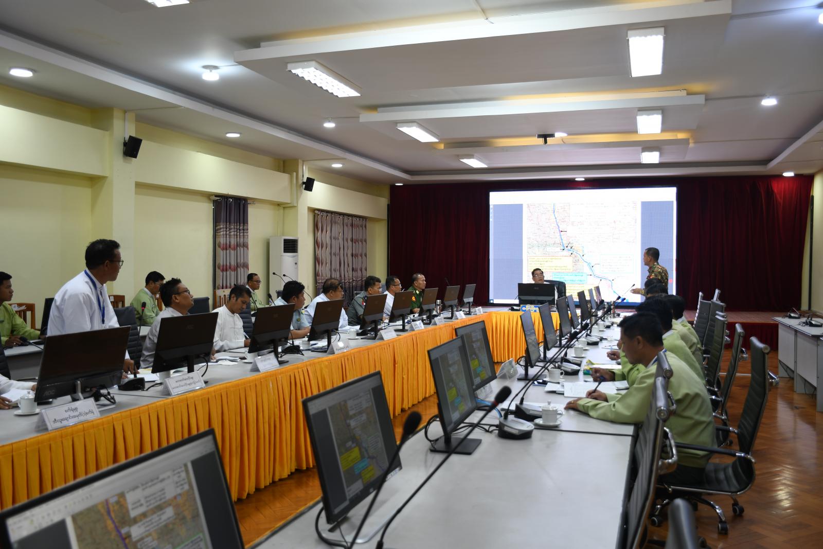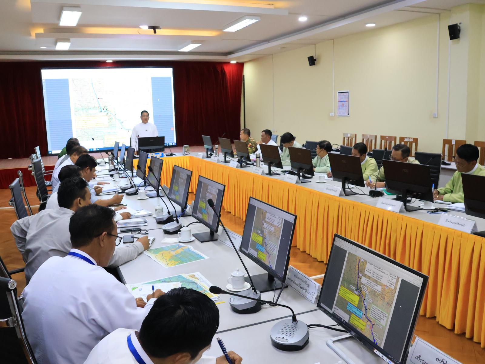 ဆက်လက်၍ မဟာဓာတ်အားလိုင်းမှူးရုံး (လွိုင်ကော်) မှ မဟာဓာတ်အားလိုင်းမှူးက လွိုင်ကော်-မိုးဗြဲ-ပင်လောင်း လမ်းတစ်လျှောက်လမ်းပိုင်းအလိုက် မဟာဓာတ်အားလိုင်းပျက်စီးမှုအခြေအနေနှင့် ပြန်လည်ပြုပြင်ထိန်းသိမ်းဆောင်ရွက်သွားမည့် အခြေအနေများ၊ ပြည်နယ်လျှပ်စစ်ဓာတ်အား ဖြန့်ဖြူးရေးလုပ်ငန်း၊ ပြည်နယ်လျှပ်စစ်အင်ဂျင်နီယာမှ အကြမ်းဖက်သောင်းကျန်းသူများကြောင့် ထိခိုက်ပျက်စီးခဲ့သည့် ၃၃ / ၁၁ ကေဗွီ ၅ အမ်ဗွီအေကယန်းသာယာဓာတ်အားခွဲရုံပြန်လည်ပြုပြင်မည့် အခြေအနေများ၊ ဘီလူးချောင်းအမှတ်(၂) လျှပ်စစ်ဓာတ်အား ပေးစက်ရုံမှူးက ဓာတ်အား ထုတ်လုပ် ပို့လွှတ်သွားမည့် အခြေအနေများ၊ ပြည်နယ်လမ်းဦးစီးဌာန၊ ဒုတိယညွှန်ကြားရေးမှူးက လွိုင်ကော်-မိုးဗြဲ-ပင်လောင်းလမ်းတစ်လျှောက် ပျက်စီးမှုများအား အမြန်ဆုံးပြန်လည်ပြုပြင်ထိန်းသိမ်း ဆောင်ရွက်သွားမည့် အခြေအနေများ၊ ခရိုင်အုပ်ချုပ်ရေးမှူး၊ မြို့နယ်အုပ်ချုပ်ရေးမှူးတို့က ပြည်သူများ ပြန်လည်ဝင်ရောက်နေထိုင်ပါက စနစ်တကျနေရာချထားနိုင်ရေး စီမံဆောင်ရွက်ထားရှိမှုအခြေအနေများကို အသီးသီးရှင်းလင်းတင်ပြခဲ့ပြီး ဒေသကွပ်ကဲရေးမှူးနှင့် ပြည်နယ်အစိုးရအဖွဲ့ဝင်များမှ လိုအပ်သည်များကို ဖြည့်စွက်ဆွေးနွေးခဲ့ကြသည်။