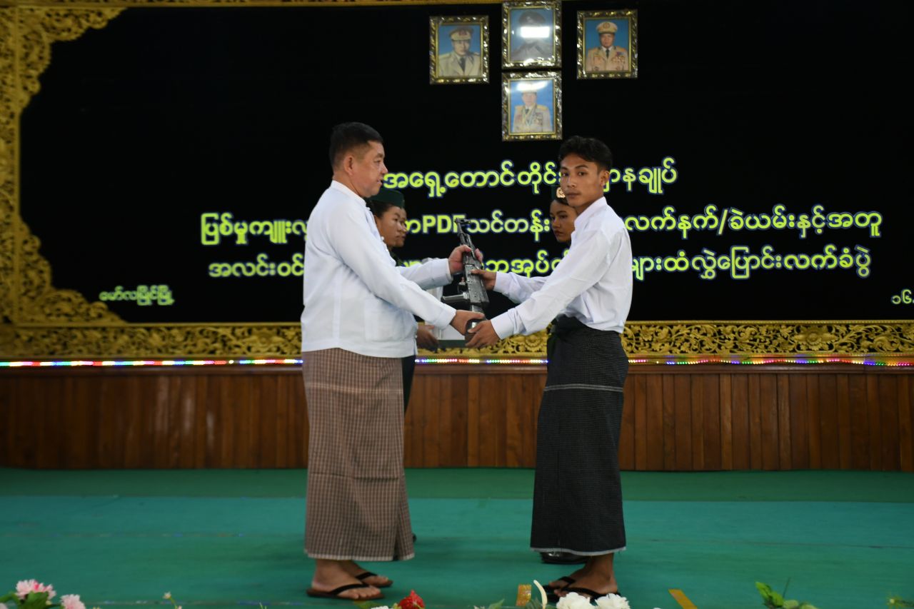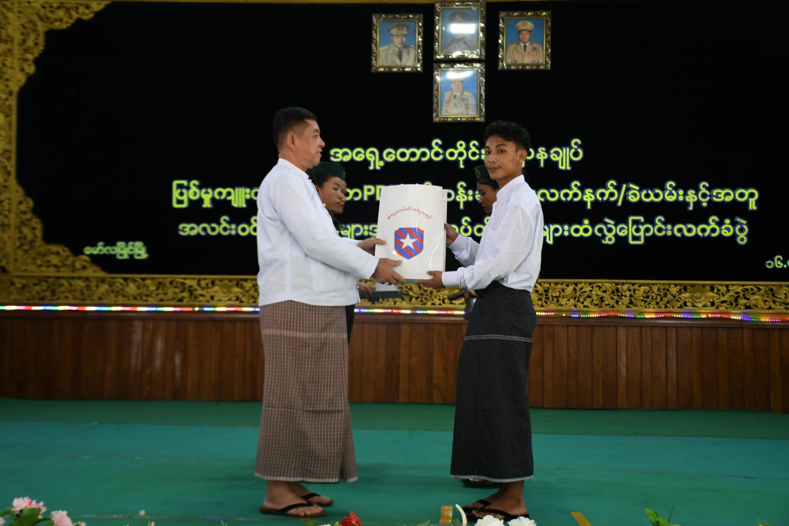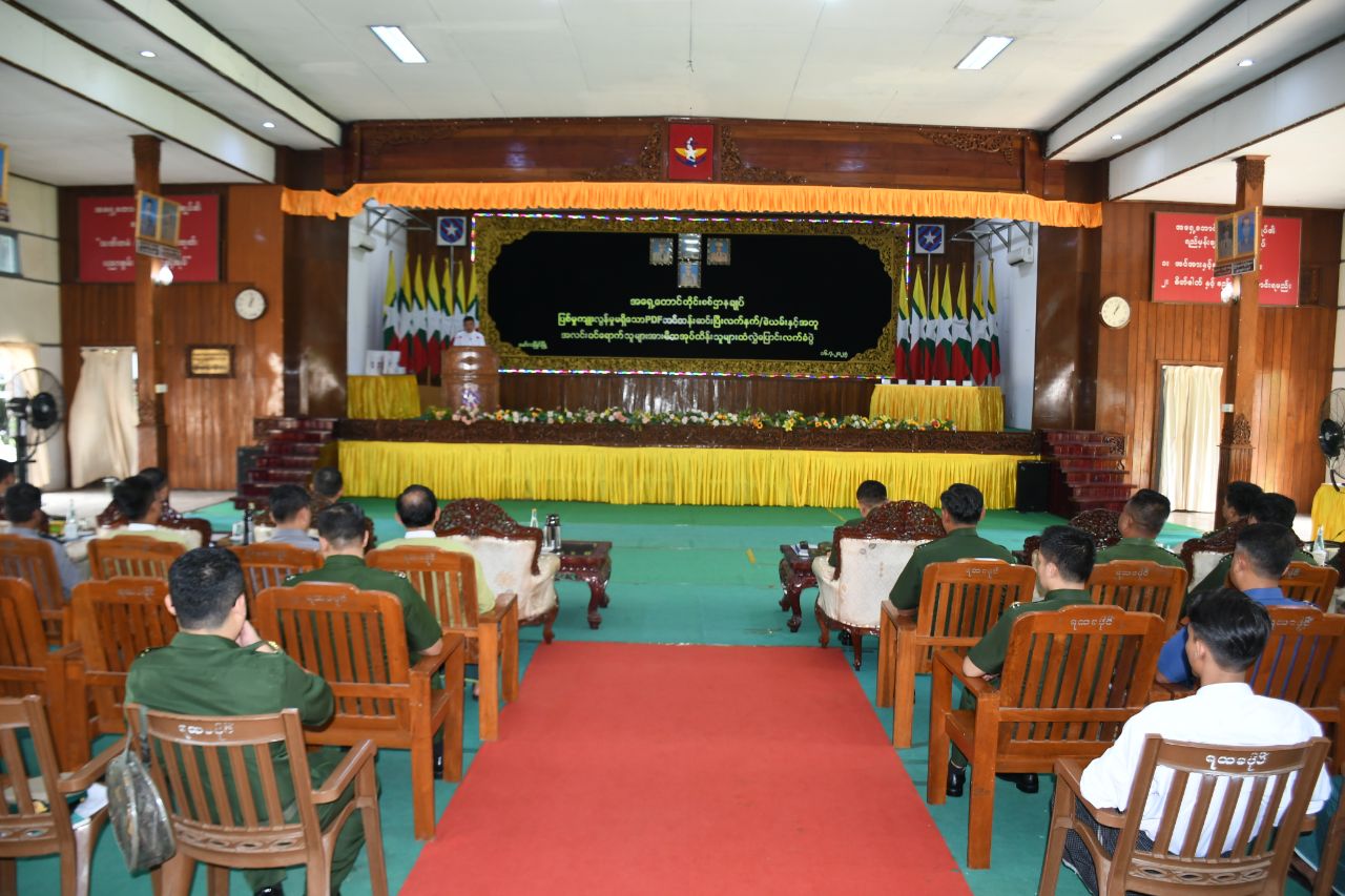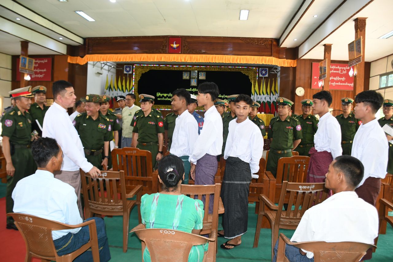 တိုင်းရင်းသားလက်နက်ကိုင်အဖွဲ့နယ်မြေများအတွင်း သင်တန်းများတက်ရောက်ခဲ့ပြီး ဥပဒေဘောင်အတွင်း ဝင်ရောက်လာသည့် ပြစ်မှုကျူးလွန်ခြင်းမရှိသော PDF သင်တန်းဆင်းများအား မိဘအုပ်ထိန်းသူများထံ လွှဲပြောင်းပေးအပ်သည့်အခမ်းအနားကို ဇူလိုင်လ ၁၆ ရက်နေ့မွန်းလွဲပိုင်းက အရှေ့တောင်တိုင်းစစ်ဌာနချုပ်၊ အောင်ဆန်းခန်းမ၌ပြုလုပ်ရာ မွန်ပြည်နယ်ဝန်ကြီးချုပ် ဦးအောင်ကြည်သိန်း၊ အရှေ့တောင်တိုင်းစစ်ဌာနချုပ်တိုင်းမှူး ဗိုလ်ချုပ်ကျော်လင်းမောင်နှင့် ဌာနဆိုင်ရာတာဝန်ရှိသူများ၊ ဥပဒေဘောင်အတွင်းဝင်ရောက်လာသော PDF အဖွဲ့ဝင်များနှင့် ၎င်းတို့၏ မိဘအုပ်ထိန်းသူများ တက်ရောက်ကြသည်။