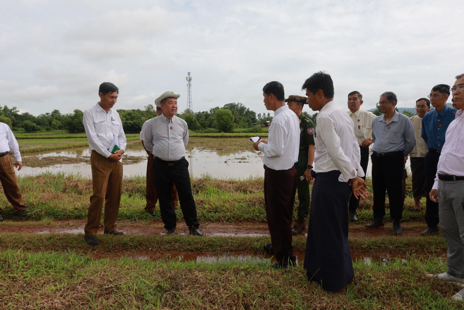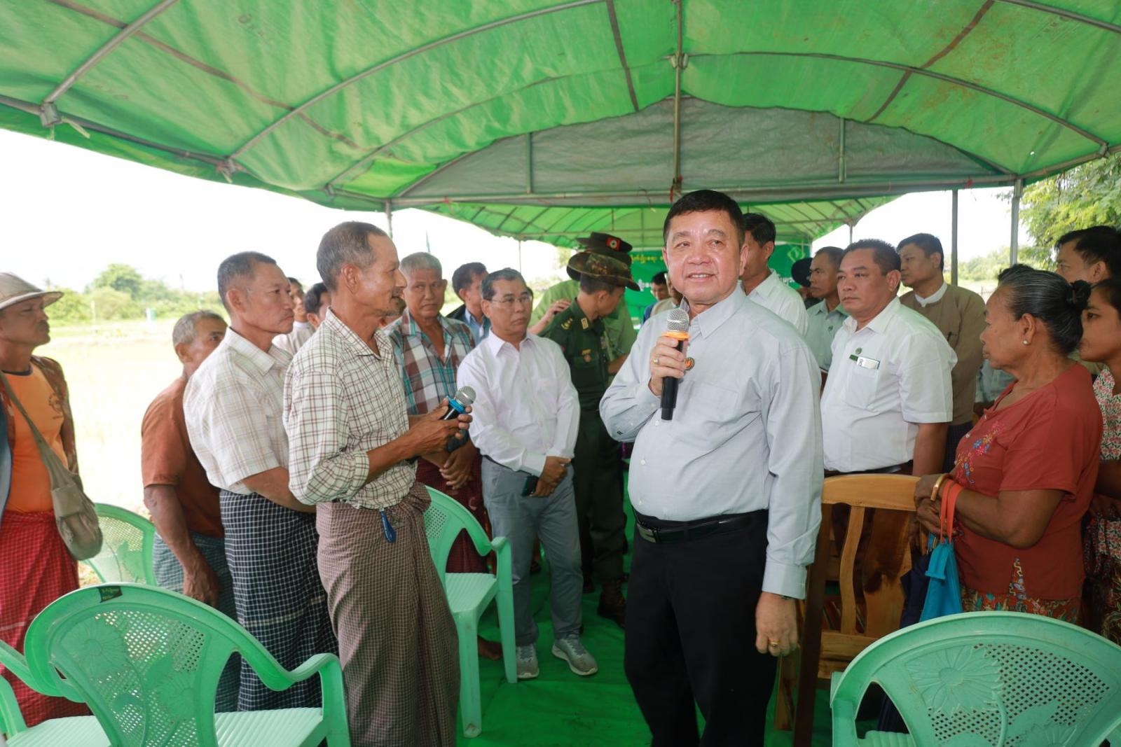 ဆက်လက်၍ ပြည်နယ်ဝန်ကြီးချုပ်နှင့် အဖွဲ့သည် မုဒုံမြို့နယ်၊ ဘဲရမ်းကျေးရွာ၊ စိုက်ပျိုးရေး (ဗဟို) မျိုးသန့်ခြံအတွင်း ယာယီရှင်းလင်းဆောင်၌ ကျင်းပပြုလုပ်သည့် မိုးစပါး(Fs-Rs) မျိုးစေ့ထုတ် စိုက်ခင်းများနှင့် သုတေသနစိုက်ခင်းများ ကွင်းသရုပ်ပြပွဲအခမ်းအနားသို တက်ရောက်၍ စိုက်ပျိုးရေး (ဗဟို) မျိုးသန့်ခြံတာဝန်ခံ ဦးဇော်လင်းက စိုက်ပျိုးရေး(ဗဟို)မျိုးသန့်ခြံ လုပ်ငန်းဆောင်ရွက်ထားရှိမှုနှင့် သုတေသနစိုက်ခင်းများအတွင်း မိုးစပါး မျိုးစေ့ ထုတ်စိုက်ခင်းများ စမ်းသပ်စိုက်ပျိုးထားရှိမှု အခြေအနေတို့အား ရှင်းလင်းတင်ပြခဲ့ပြီး ပြည်နယ်ဝန်ကြီးချုပ်က တစ်ဧကအထွက်နှုန်း ပိုမိုထွက်ရှိရေးအတွက် မျိုးကောင်းမျိုးသန့် စပါးများဖြင့် အစားထိုးစိုက်ပျိုးခြင်း၊ စိုက်ပျိုးနည်းစနစ် ပြောင်းလဲစိုက်ပျိုးခြင်းများ လုပ်ဆောင်ရမှာ ဖြစ်ပြီး သို့မှသာ ပန်းတိုင်အထွက်နှုန်းသို့ ရောက်ရှိမှာဖြစ်ပါကြောင်း၊ တောင်သူများအား မျိုးမှန်၊ မြေမှန်၊ ရေမှန်၊ စိုက်နည်းမှန် နည်းစနစ်ကောင်းများနှင့် လယ်ယာသုံးစက်ကရိယာများ ကူညီဆောင်ရွက်ပေးကြရန်နှင့် တောင်သူများအနေ့ဖြင့်လည်း လျာထားသီးနှံများ၏ စိုက်ဧကများ ပြည့်မီရေး၊ ပန်းတိုင်အထွက်နှုန်းရရှိရေး စနစ်တကျ စိုက်ပျိုးကြစေလိုကြောင်း၊ မျိုးကောင်း/မျိုးသန့်များ ပိုမိုစမ်းသပ် စိုက်ပျိုးထုတ်လုပ်ကာ ဒေသခံတောင်သူများ လက်ဝယ်အရောက် ဆောင်ရွက်ပေးမှသာ တောင်သူများ အချိန်မီ စိုက်ပျိုးနိုင်မည်ဖြစ်ကာ စပါးအထွက်နှုန်း ကောင်းမွန် မည်ဖြစ်၍ ဒေသခံတောင်သူများနှင့် ပေါင်းစပ်ညှိနှိုင်းလုပ်ကိုင် ဆောင်ရွက်ကြစေလိုကြောင်းပြောကြားသည်။