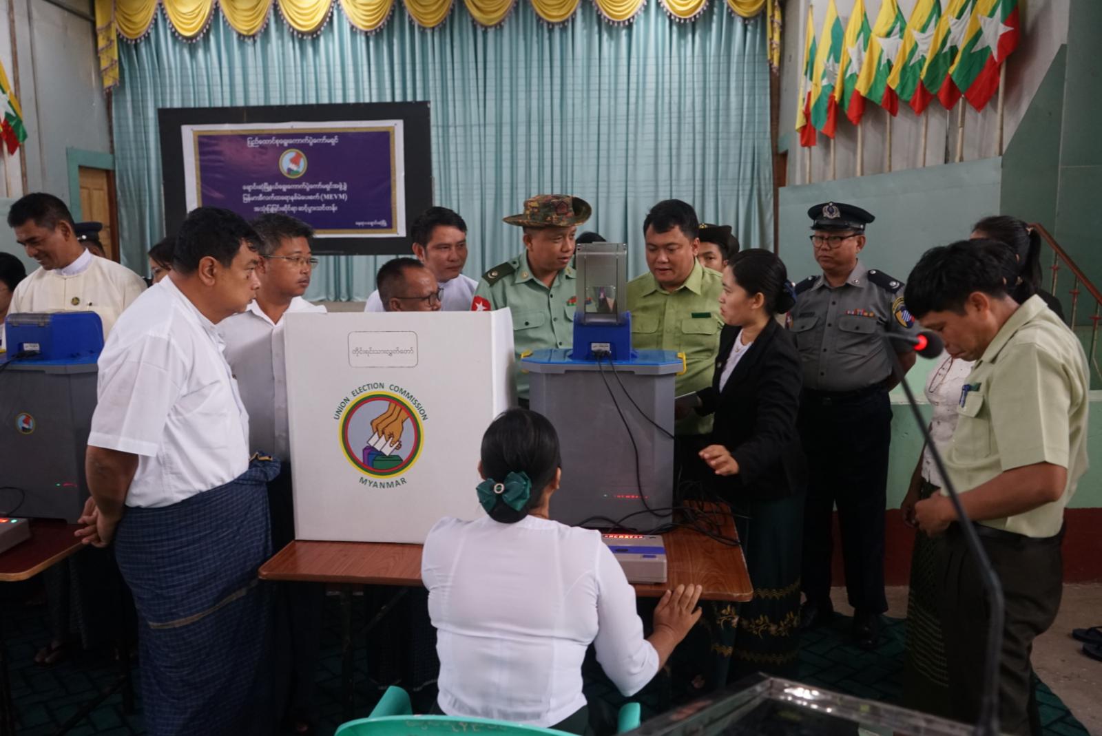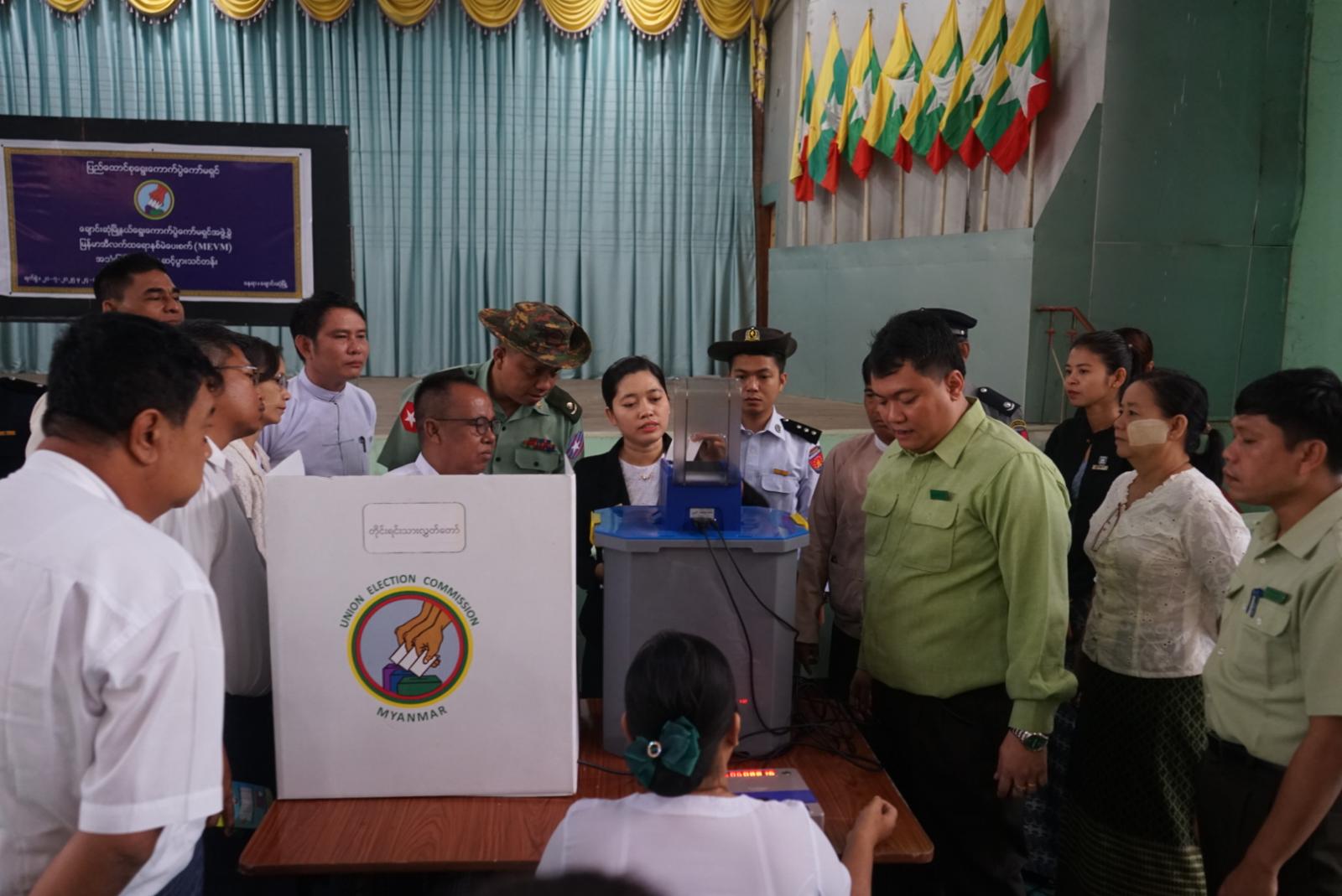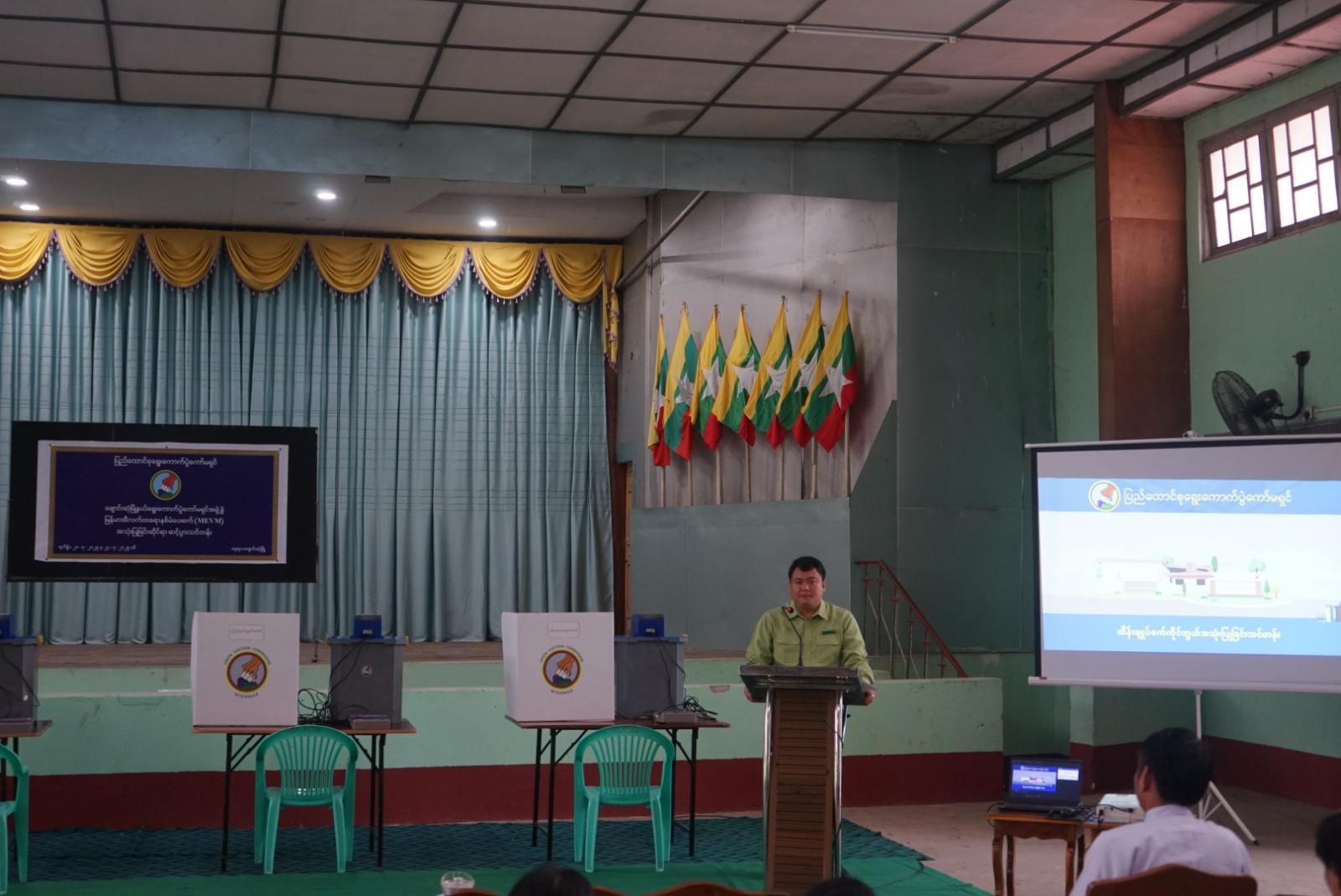 အခမ်းအနားတွင် မြို့နယ်စီမံအုပ်ချုပ်ရေးအဖွဲ့ဥက္ကဋ္ဌ ဦးဇော်နိုင်ဝင်းက အဖွင့်အမှာစကားပြောကြားရာ မဲပေးစက်ဖြင့်မဲပေးခြင်းသည် မိမိတို့နိုင်ငံအတွက် ပထမဆုံးအကြိမ်ဆောင်ရွက်ခြင်းဖြစ်ရာ မဲဆန္ဒရှင်ပြည်သူများလွယ်ကူစွာမဲပေးနိုင်ရေးနှင့် မဲပေးစက်ကိုင်တွယ်မည့်သူများ စနစ်တကျကိုင်တွယ်နိုင်ရေးအတွက် စနစ် တကျသင်ကြားသွားကြရန်လိုကြောင်း စသည်ဖြင့်ထည့်သွင်းပြောကြားခဲ့ပြီး မြို့နယ်ရွေးကောက်ပွဲကော်မရှင်အဖွဲ့ခွဲမှ တာဝန်ရှိသူများမှတက်ရောက်လာကြသူ များအား မြန်မာအီလက်ထရောနစ်မဲပေးစက်(MEVM) အသုံးပြုပုံများအား ရှင်းလင်းပြသခဲ့သည်။