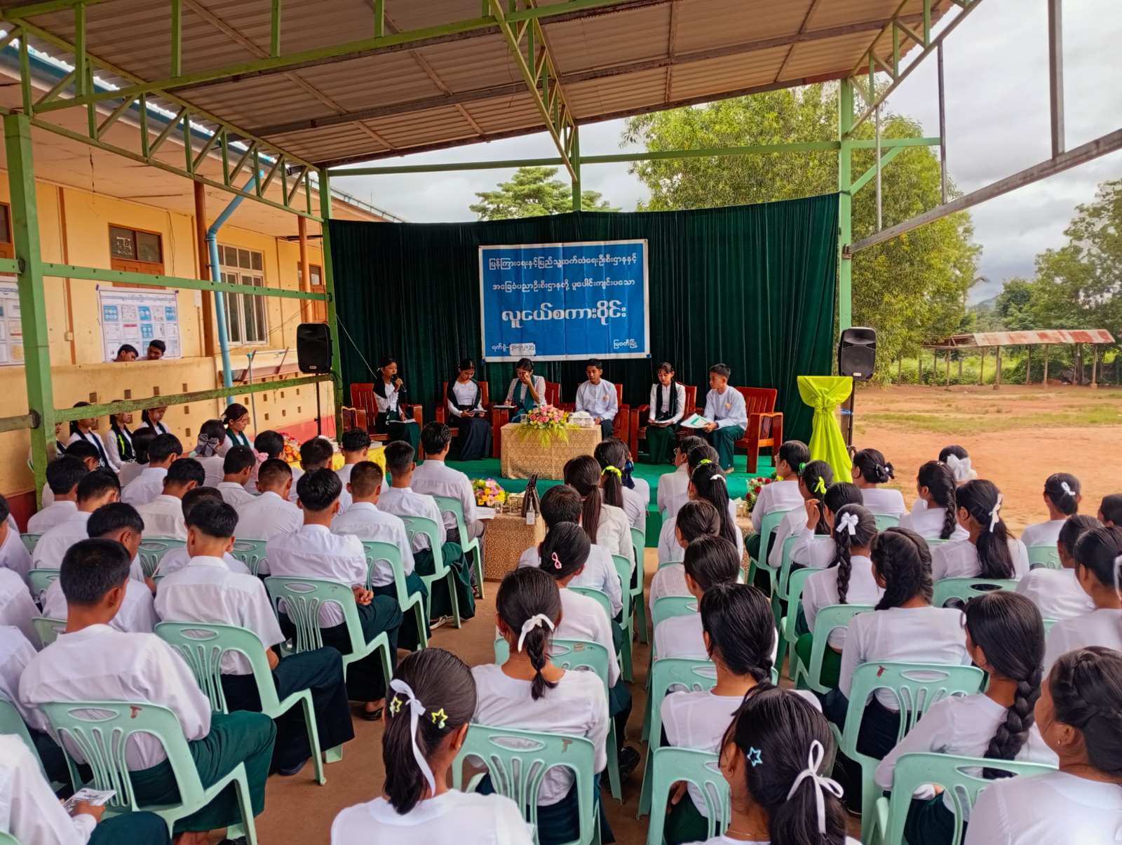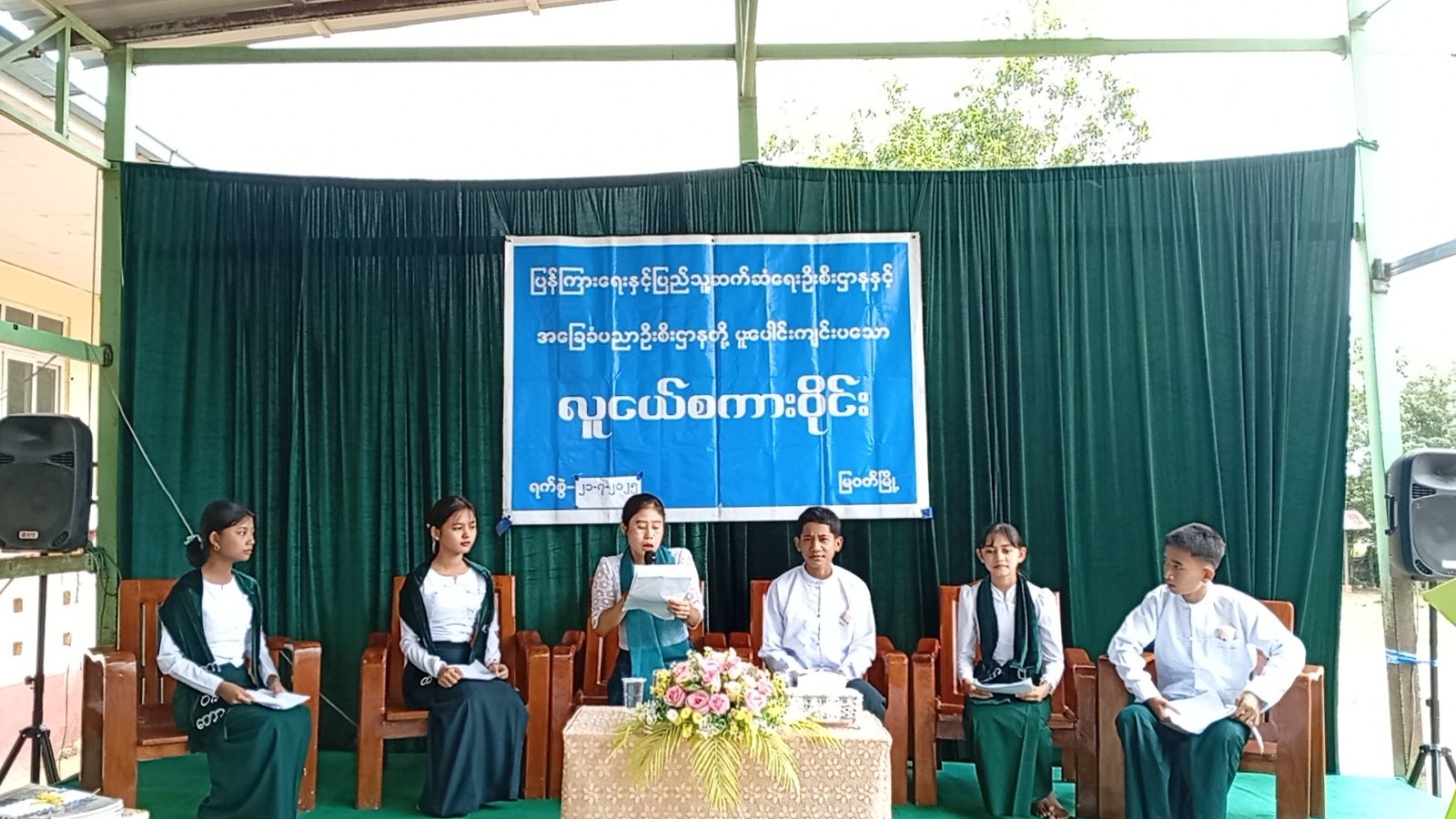 ကျောင်းသား၊ ကျောင်းသူလူငယ်များ ဗလငါးတန်ဘက်စုံဖွံ့ဖြိုး တိုးတက်စေရန် ရည်ရွယ်၍ ပြန်ကြားရေးနှင့်ပြည်သူ့ဆက်ဆံရေးဦးစီဌာနနှင့်အခြေခံပညာဦးစီးဌာနတို့ပူးပေါင်း၍ လူငယ်စကားဝိုင်းကို ယနေ့နံနက် (၁၀) နာရီက ကရင်ပြည်နယ်၊ မြဝတီခရိုင်၊ မြဝတီမြို့ အခြေခံပညာအထက်တန်း (ဝါးတော) ကျောင်း၌ ကျင်းပပြုလုပ်ရာ အခြေခံပညာအထက်တန်း (ဝါးတော) ကျောင်းအုပ်ဆရာမ ဒေါ်စိုးစိုးသက်က အဖွင့်အမှာစကားပြောကြားခဲ့သည်။