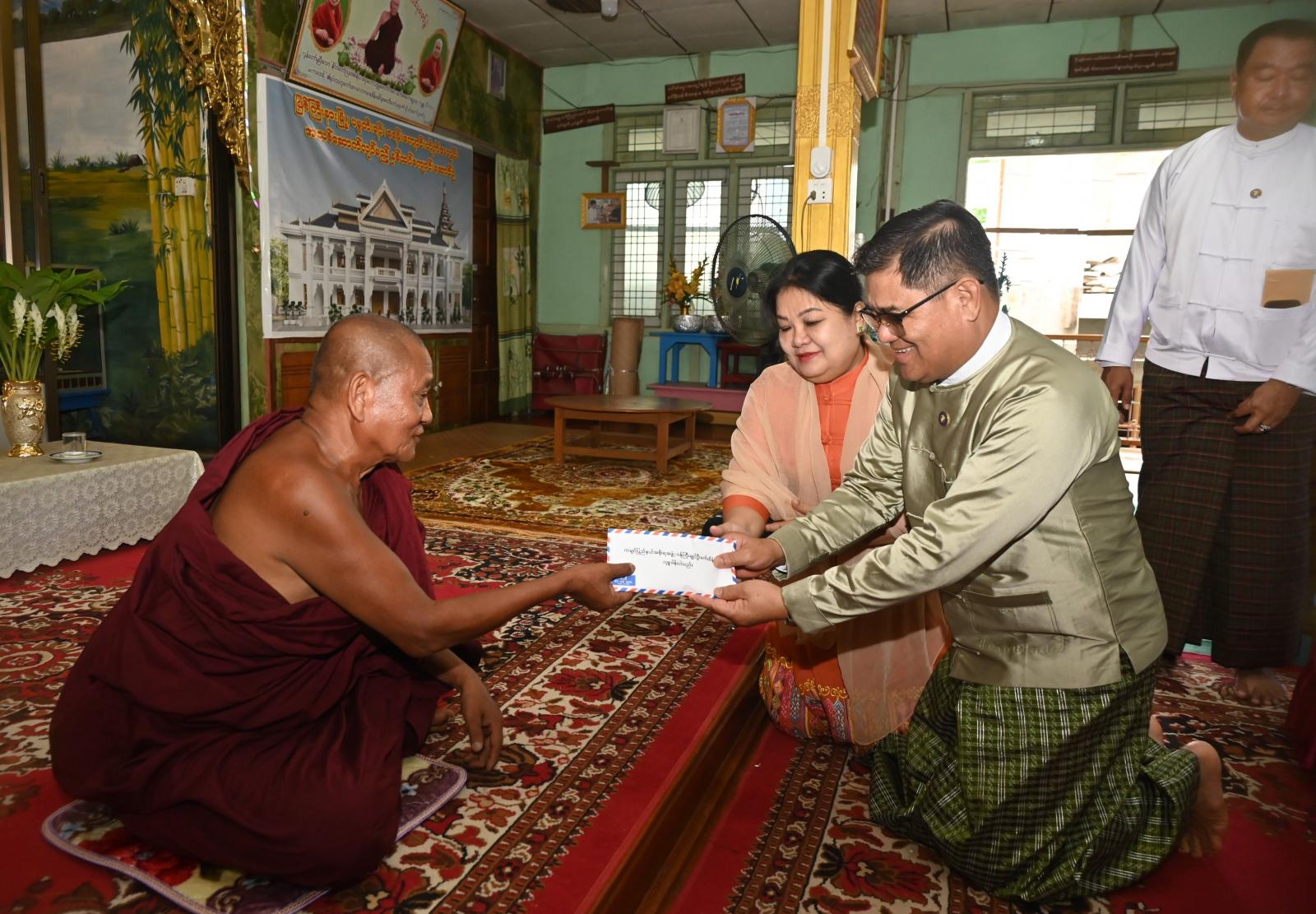 ထို့နောက် ပြည်နယ်ဝန်ကြီးချုပ်နှင့် အဖွဲ့ဝင်များသည် မြစ်ကြီးနားမြို့ ပမ္မတီးရပ်ကွက် ခရမ်းကျောင်းတိုက်၌ တိုင်းလိုင်ရှမ်းမျိုးနွယ်စုများ၏ စတုတ္ထအကြိမ်စုပေါင်းဝါဆိုသင်္ကန်း ဆက်ကပ်လှူဒါန်းပွဲသို့ တက်ရောက်အားပေးခဲ့ကြပြီး ကျောင်းထိုင်ဆရာတော်ထံ အလှူငွေများကို ဆက်ကပ်လှူဒါန်းကာ တိုင်းလိုင်ရှမ်းမျိုးနွယ်စုများ၏ တေးဂီတဖြင့် ဖျော်ဖြေတင်ဆက်မှု၊ ရိုးရာအကဖြင့် ဖျော်ဖြေတင်ဆက်မှုများကို ကြည့်ရှုအားပေးခဲ့ကြပြီး ချီးမြှင့်ငွေများကို ပေးအပ်ချီးမြှင့်ခဲ့ကြသည်။