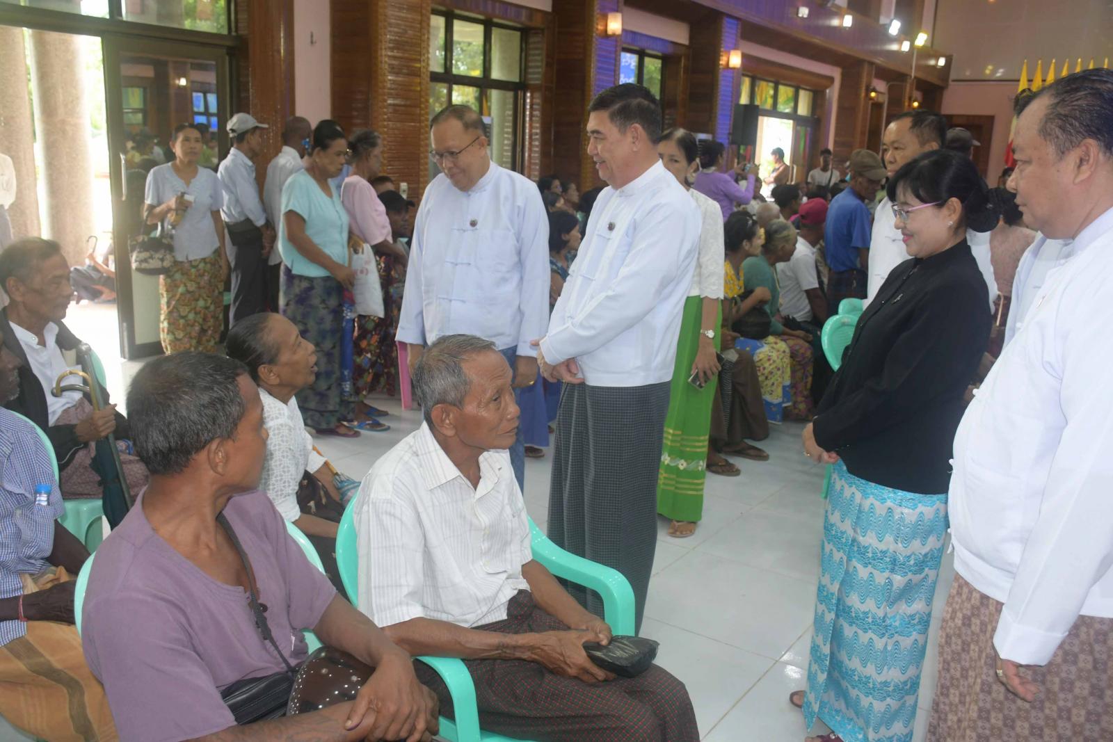 အငြိမ်းစားဝန်ထမ်းများအား ပင်စင်လစာထုတ်ပေးခြင်း၊ ကျန်းမာရေးစောင့်ရှောက်မှုပေးခြင်းနှင့် ချီးမြှင့် ပေးအပ်ခြင်း ဆောင်ရွက်ရာတွင် ခုတင် ၅၀၀ ဆံ့ အထွေထွေရောဂါကုဆေးရုံကြီးမှ ဆေးရုံအုပ်ကြီးနှင့် တာဝန်ရှိသူများက အနီးကပ်ကြီးကြပ်ကာ ခုတင် ၅၀၀ ဆံ့ အထွေထွေရောဂါကုဆေးရုံကြီးမှ သမားတော်ကြီး များ၊ အထူးကုဆရာဝန်ကြီးများနှင့် ကျန်းမာရေးဝန်ထမ်းများက သွေးပေါင်ချိန် တိုင်းတာပေးခြင်း၊ သွေးအတွင်း အောက်ဆီဂျင်ပါဝင်မှု တိုင်းတာပေးခြင်း၊ ဆီးချို၊ သွေးချိုစစ်ဆေးပေးခြင်း၊ နှလုံးရောဂါစစ်ဆေးခြင်းနှင့် အီးစီဂျီရိုက်ပေးခြင်း များကိုဆောင်ရွက်ပေးကြပြီး လိုအပ်သောဆေးဝါးများကိုလည်း အခမဲ့ထုတ်ပေးကြသည်။ အလားတူ တိုင်းရင်းဆေးပညာဦးစီးဌာနမှ ပြည်နယ်ဦးစီးမှူးနှင့် ဝန်ထမ်းများကလည်း အငြိမ်းအစားဝန်ထမ်းများအား တိုင်းရင်းဆေးဝါးများနှင့် ကုသပေးခြင်းများကို ဆောင်ရွက်ပေးကြပြီး တိုင်းရင်းဆေးများကို အခမဲ့ချီးမြှင့်ပေးအပ်ခဲ့ကြသည်။