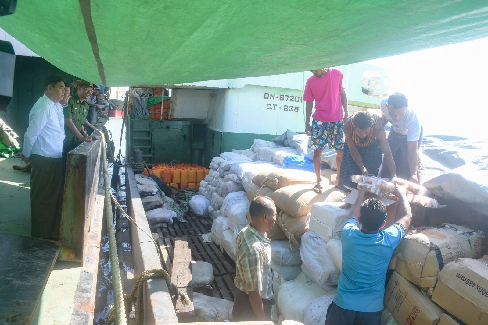စစ်တွေမြို့တွင် ကုန်တင်ကုန်ချပြုလုပ်နေသော MV-ALLIANCE (002) သင်္ဘောတွင် တည်ဆောက် လုပ်ငန်းသုံး ပစ္စည်း ၁၃၅၉ ဒသမ ၀၁ တန်၊ အမ်ဗွီတော်ဝင်သီရိ သင်္ဘောတွင် ဆန်နှင့်အခြေခံစားသောက်ကုန်ပစ္စည်းများ ၄၀၄ ဒသမ ၂ တန်၊ အမ်ဗွီတော်ဝင်ရတနာ သင်္ဘောတွင် ဆန်၊ စားသုံးဆီနှင့် အခြေခံစားသောက်ကုန် ပစ္စည်းများ ၁၂၇၁ တန်၊ အမ်ဗွီရဲထွန်းအောင်(၃) သင်္ဘောတွင် ဆန်နှင့်အခြေခံ စားသောက်ကုန်ပစ္စည်းများ ၁၁၁၄ ဒသမ ၃ တန်၊ အမ်ဗွီ အောင်ရတနာ(၁)သင်္ဘောတွင် ဆန်နှင့်အခြေခံ စားသောက်ကုန်ပစ္စည်းများ ၅၄၅ တန်တို့ တင်ဆောင်ပြီး စစ်တွေမြို့သို့ ရောက်ရှိလာခြင်းဖြစ်သည်။