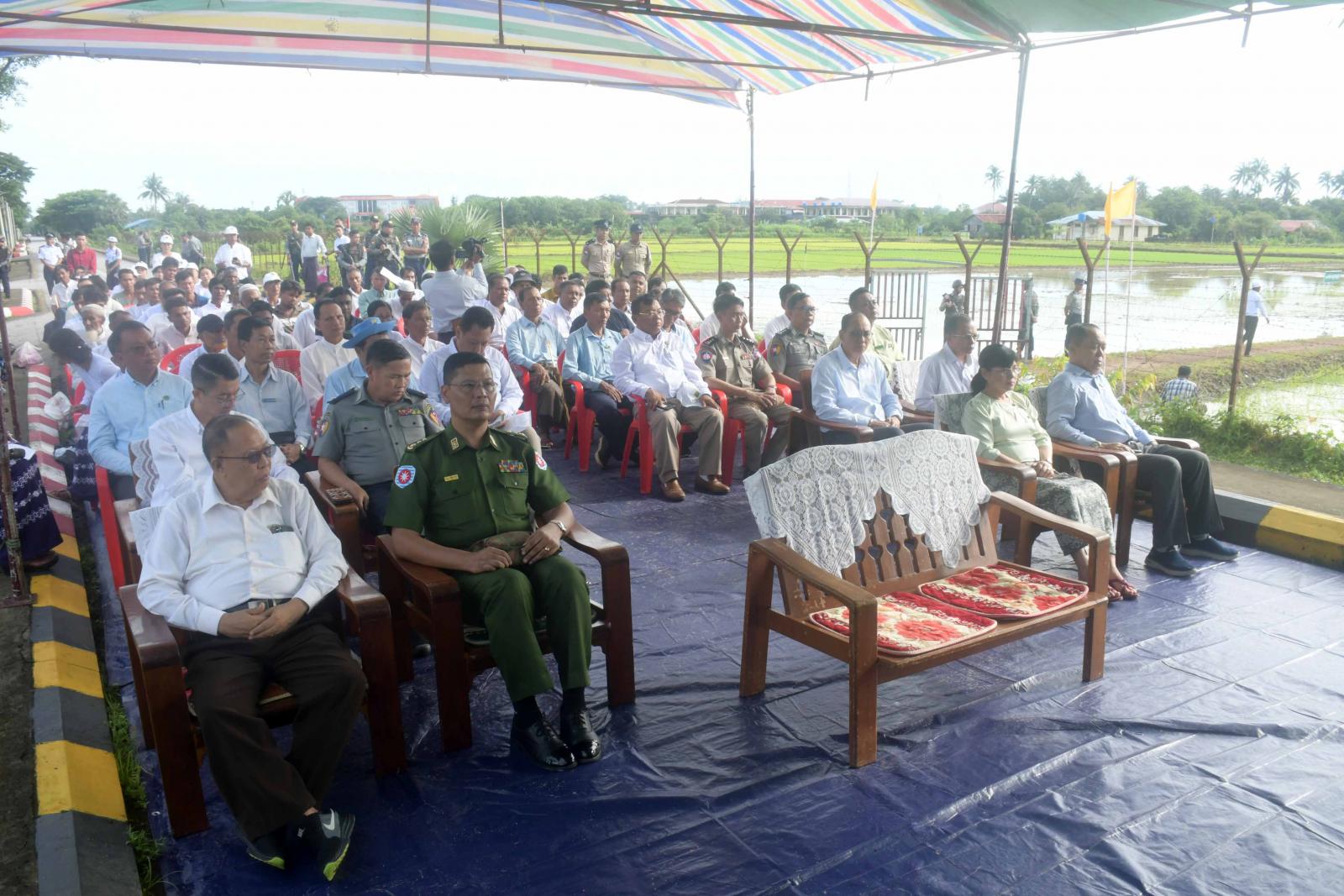 ရခိုင်ပြည်နယ်အစိုးရအဖွဲ့၏ ကြီးကြပ်မှုဖြင့် ဆောင်ရွက်သည့် မိုးစပါးပန်းတိုင် အထွက်နှုန်း ရရှိရေး စိုက်စနစ်များ ကွင်းပြပွဲကို ယနေ့နံနက်ပိုင်းက စနစ်ကျလယ်ယာမြေအဖြစ် ဖော်ဆောင်ထားသော စစ်တွေမြို့၊ ပြည်တော်သာစိုက်ကွင်း၌ ကျင်းပရာ ရခိုင်ပြည်နယ်ဝန်ကြီးချုပ် ဦးထိန်လင်း၊ ပြည်နယ်တရား လွှတ်တော်တရားသူကြီးချုပ်၊ ပြည်နယ်အစိုးရအဖွဲ့ဝင်များ၊ ဌာနဆိုင်ရာများ၊ စစ်တွေမြို့၊ စိုက်ပျိုးမွေးမြူရေးအထက်တန်းကျောင်းမှ ဆရာ၊ဆရာမများနှင့် ကျောင်းသူသား၊ ကျောင်းသူများ၊ ဒေသခံတောင်သူများနှင့် ဖိတ်ကြားထားသူများ တက်ရောက်ကြကြောင်း သိရသည်။