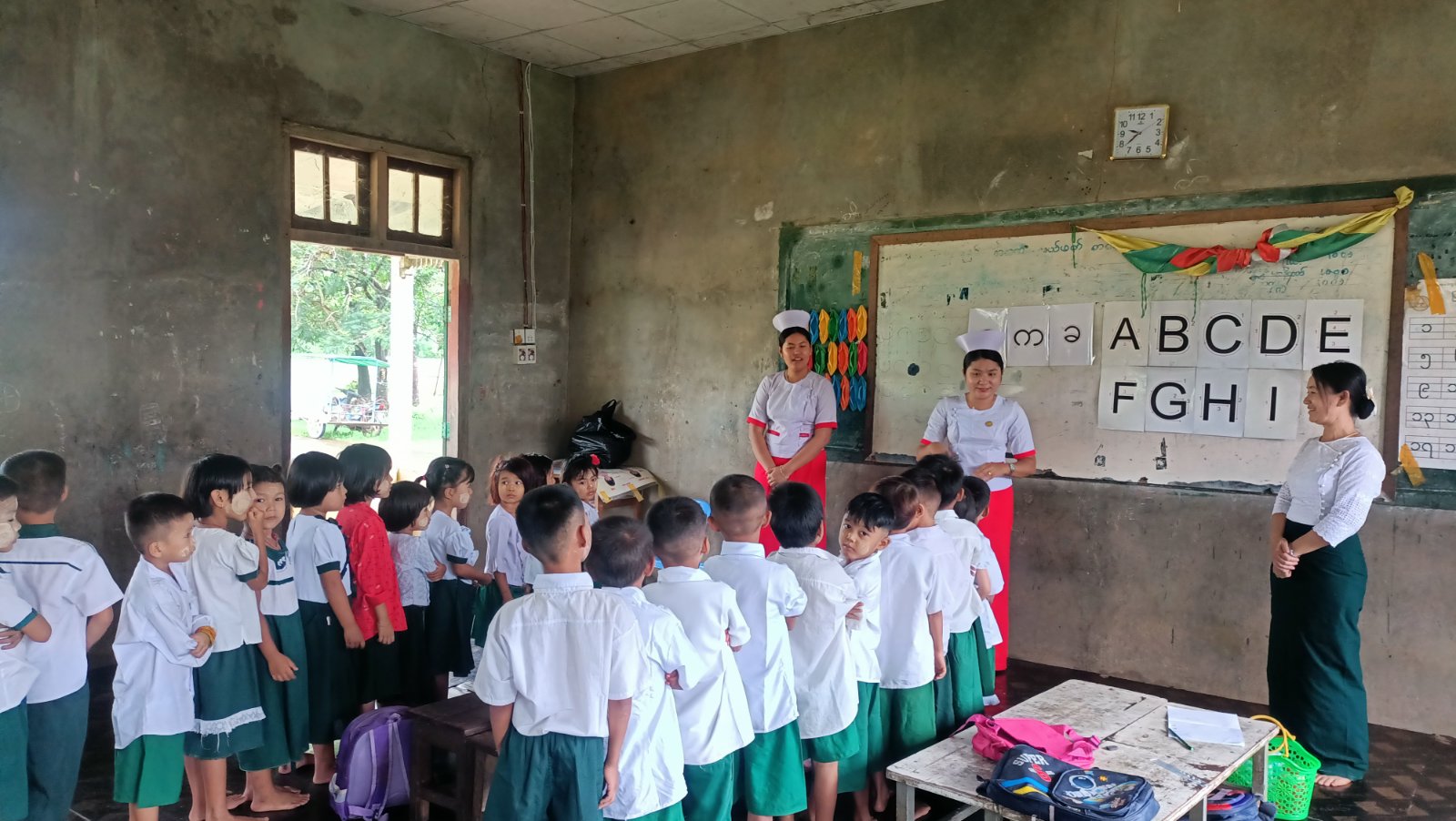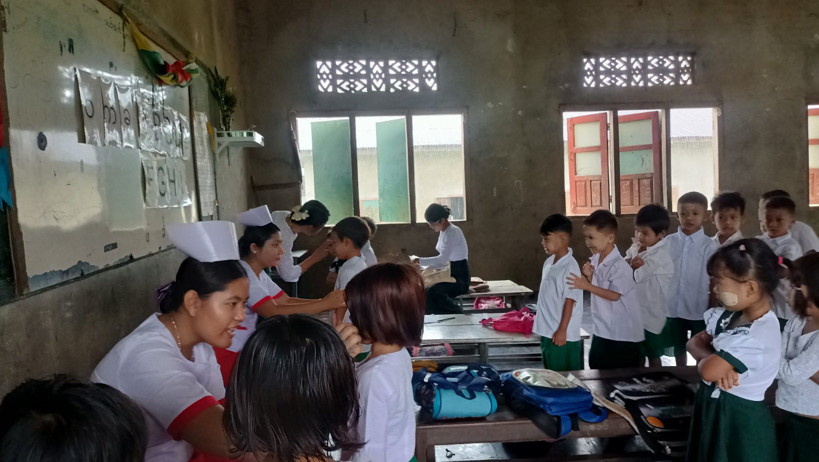 ထို့နောက် ကျောင်းသား၊ ကျောင်းသူများအား သန်ချဆေးတိုက်ကျွေးခြင်း၊ အာဟာရနှင့် ခန္ဓာကိုယ်ဖွံ့ဖြိုးမှု အခြေအနေ စစ်ဆေးခြင်းများ ဆောင်ရွက်ကြပြီး လိုအပ်သည့် ဆေးဝါးပစ္စည်းများ ထောက်ပံ့ပေးအပ်ခဲ့ကြကြောင်း သိရသည်။