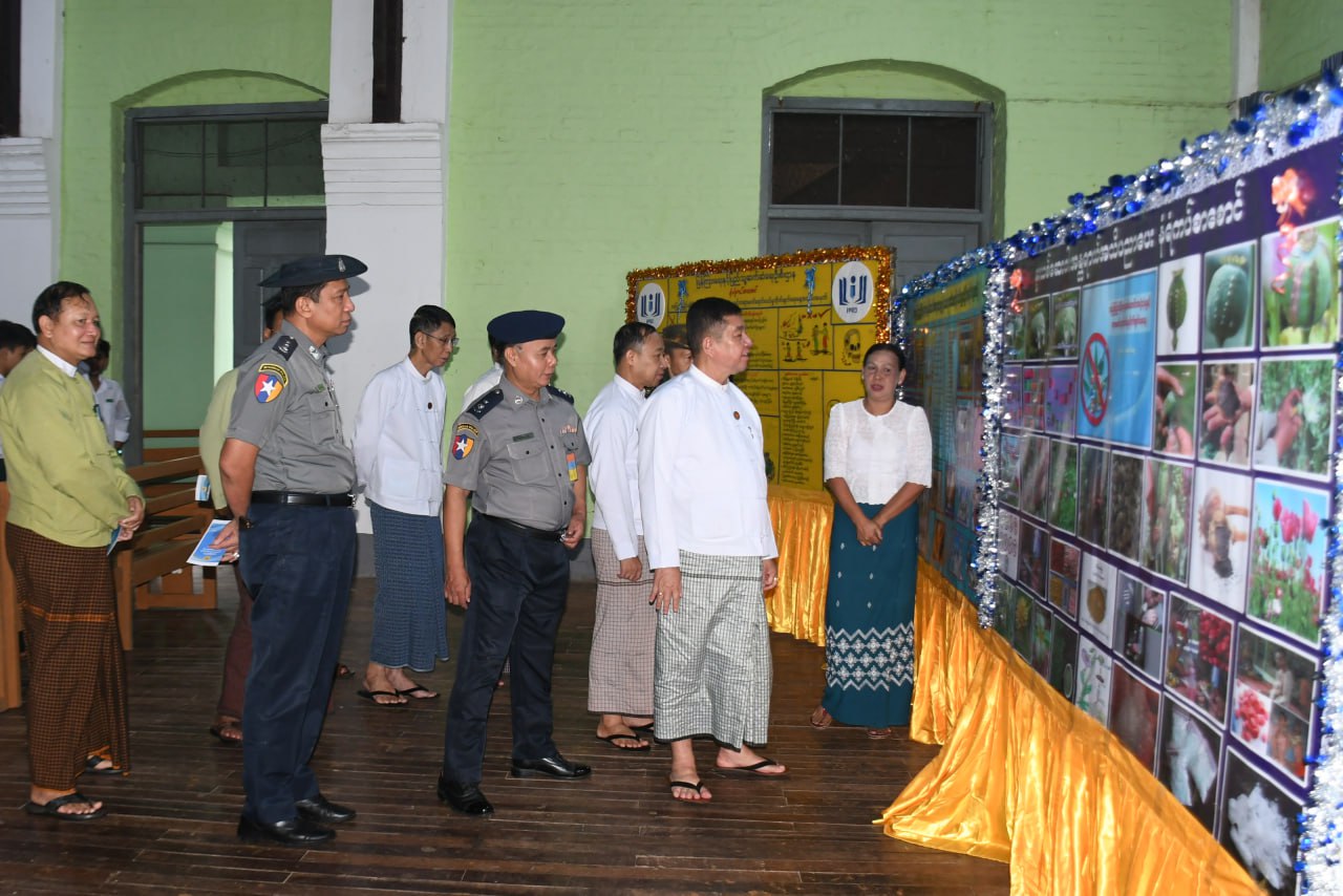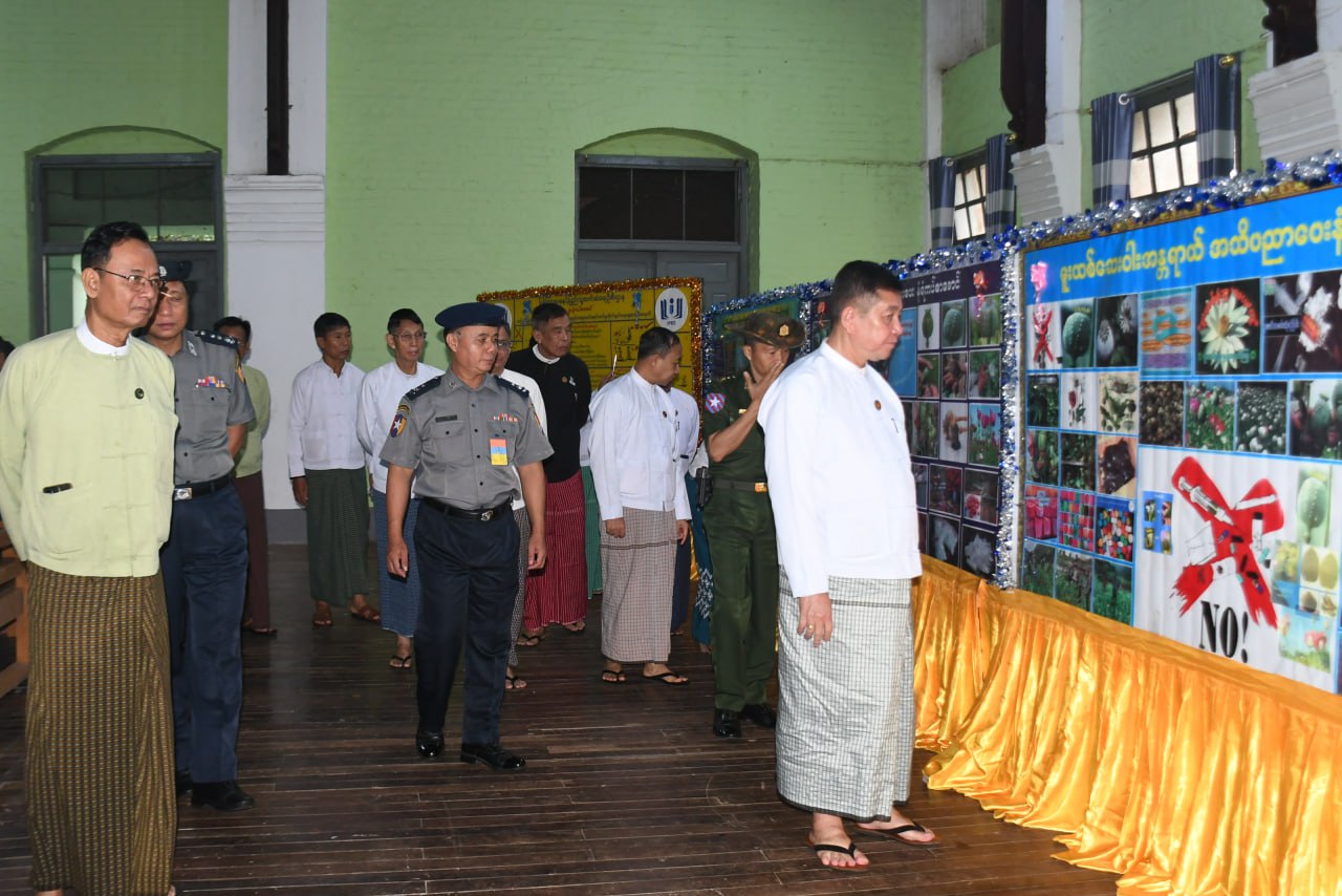 ဆက်လက်၍ ပြည်နယ်ဝန်ကြီးချုပ်နှင့် တာဝန်ရှိသူများသည် ခန်းမအတွင်း ခင်းကျင်းပြသထားသော မူးယစ်အန္တရာယ်တားဆီးကာကွယ်၊ မူးယစ်ဆေးဝါးအမျိုးမျိုး၊ မူးယစ်ဆေးဝါးအန္တရာယ်တိုက်ဖျက်ရေး၊ ကျောင်းသားလူငယ်များ လိုက်နာသင့်သည့်အချက်များစသည့် အသိပညာပေးနံရံကပ်စာစောင်များကို လှည့်လည်ကြည့်ရှုအားပေးခဲ့ကြောင်း သိရှိရသည်။