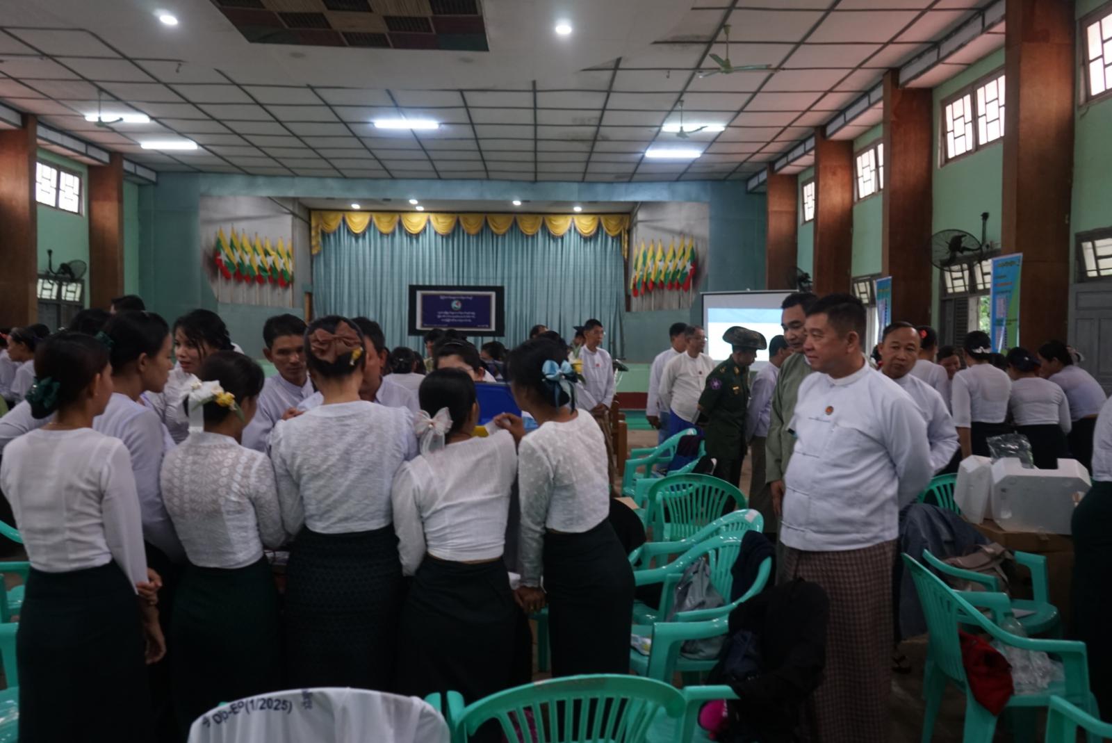 မွန်ပြည်နယ်၊ ချောင်းဆုံမြို့နယ်အတွင်းရှိ မဲဆန္ဒရှင်ပြည်သူများ ပါတီစုံဒီမိုကရေစီအထွေထွေရွေးကောက်ပွဲတွင် မဲလက်မှတ်ဖြင့် မဲပေးခြင်းစနစ်အစား အီလက်ထရောနစ်မဲပေးစက်ဖြင့် မဲပေးနိုင်ရေးအတွက် မြို့နယ်ရွေးကောက်ပွဲကော်မရှင်အဖွဲ့ခွဲမှ မြန်မာအီလက်ထရောနစ်မဲပေးစက် (MEVM) အသုံးပြုခြင်းဆင့်ပွားသင်တန်းကို ကျွန်းသာယာခန်းမ၌ ဖွင့်လှစ်လျက်ရှိရာ ဇူလိုင် ၂၂ ရက် နံနက်(၁၀)နာရီက မွန်ပြည်နယ်ဝန်ကြီးချုပ် ဦးအောင်ကြည်သိန်းနှင့် ပြည်နယ်အစိုးရအဖွဲ့ဝင်ဝန်ကြီးများ တက်ရောက်ကြည့်ရှုအားပေးခဲ့ကြသည်။