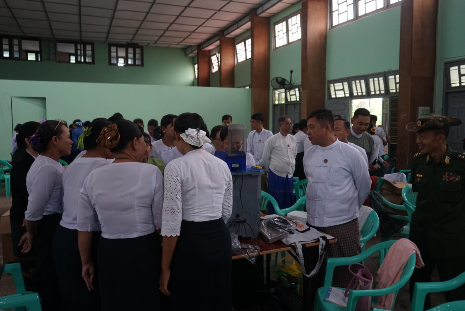 မွန်ပြည်နယ်ဝန်ကြီးချုပ်နှင့် ပြည်နယ်အစိုးရအဖွဲ့ဝင်ဝန်ကြီးများမှ မဲဆန္ဒရှင်ပြည်သူများ ပထမဆုံးအကြိမ် အီလက်ထရောနစ်မဲပေးစက်ဖြင့် လွယ်ကူစွာမဲပေးနိုင်ရေးနှင့် မဲပေးစက် ကိုင်တွယ်မည့်သူများ စနစ်တကျကိုင်တွယ်နိုင်ရေးအတွက် မြန်မာအီလက်ထရောနစ်မဲပေးစက် (MEVM) အသုံးပြုပုံများအား သင်တန်းသား၊ သင်တန်းသူများမှ သင်ကြားသင်ယူနေမှုများအား လိုက်လံကြည့်ရှုအားပေးခဲ့ကြပြီး လိုအပ်သည်များကို ကဏ္ဍအလိုက် သက်ဆိုင်ရာတာဝန်ရှိသူများအား လမ်းညွှန်မှာကြားခဲ့ကြသည်။