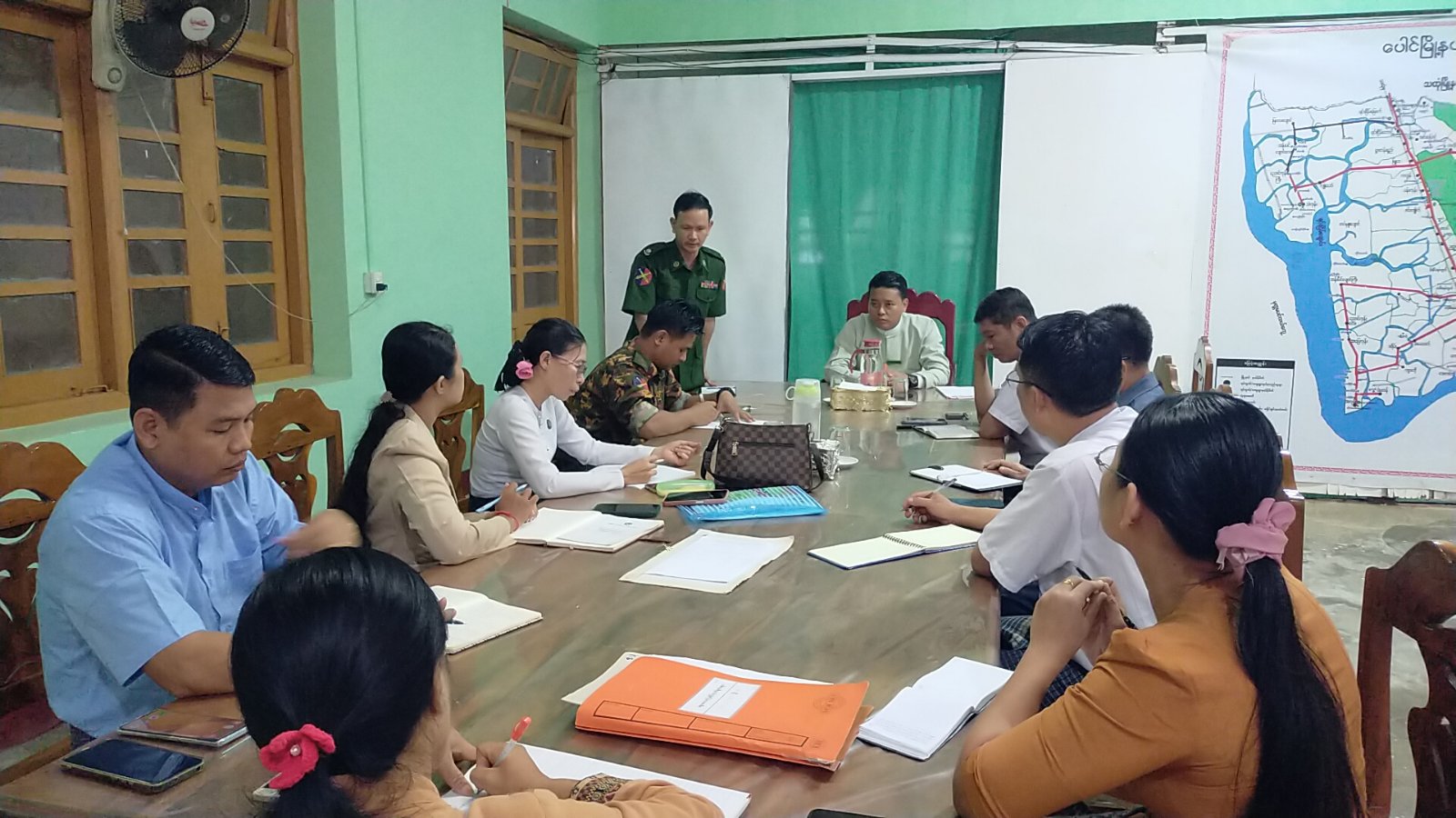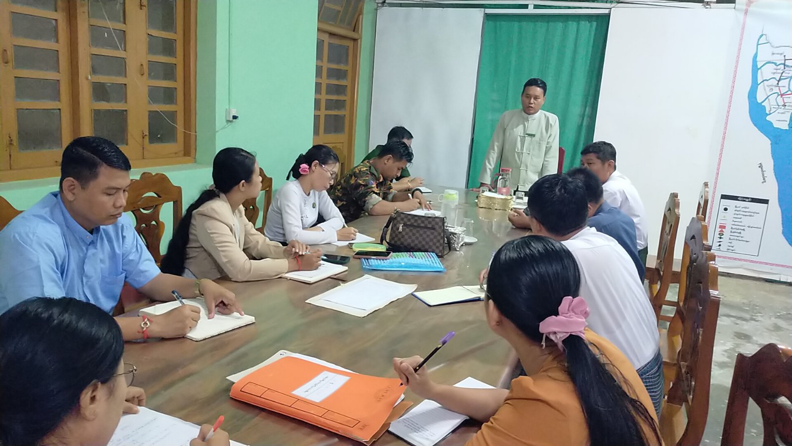 မွန်ပြည်နယ်၊ ပေါင်မြို့နယ်၌ မြန်မာအီလက်ထရောနစ်မဲပေးစက်(MEVM) အသုံးပြုခြင်းဆိုင်ရာ ကိုင်တွယ်ထိန်းသိမ်းနည်းသင်တန်းနှင့် လက်တွေ့သရုပ်ပြစမ်းသပ်မဲပေးခြင်း လုပ်ငန်းညှိနှိုင်းအစည်းအဝေးကို ဇူလိုင် ၂၂ ရက် နံနက် (၁၁)နာရီက အထွေထွေအုပ်ချုပ်ရေးဦးစီးဌာန အစည်းအဝေးခန်းမ၌ ပြုလုပ်ခဲ့သည်။