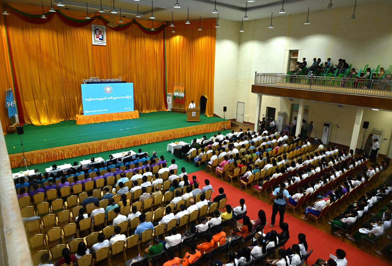 ကချင်ပြည်နယ်အစိုးရအဖွဲ့၏ ကြီးကြပ်စီမံမှုဖြင့် ပြည်နယ်သဘာဝဘေးအန္တရာယ်ဆိုင်ရာစီမံ ခန့်ခွဲအဖွဲ့ဝင်များက ငလျင်ဘေးအန္တရာယ်ဆိုင်ရာ သိသင့်သိထိုက်သည့်အချက်များ၊ သတိပြုလိုက်နာ၍ ကြိုတင်ကာကွယ်ဆောင်ရွက်ရမည့်ကိစ္စရပ်များနှင့် စပ်လျဉ်း၍ အများပြည်သူနှင့် ကျောင်းသား/ ကျောင်းသူများအား အသိပညာပေးဟောပြောပွဲကို ယနေ့နံနက် ၉ နာရီက မြစ်ကြီးနား တက္ကသိုလ်ဘွဲ့နှင်းသဘင်ခန်းမ၌ ကျင်းပပြုလုပ်သည်။