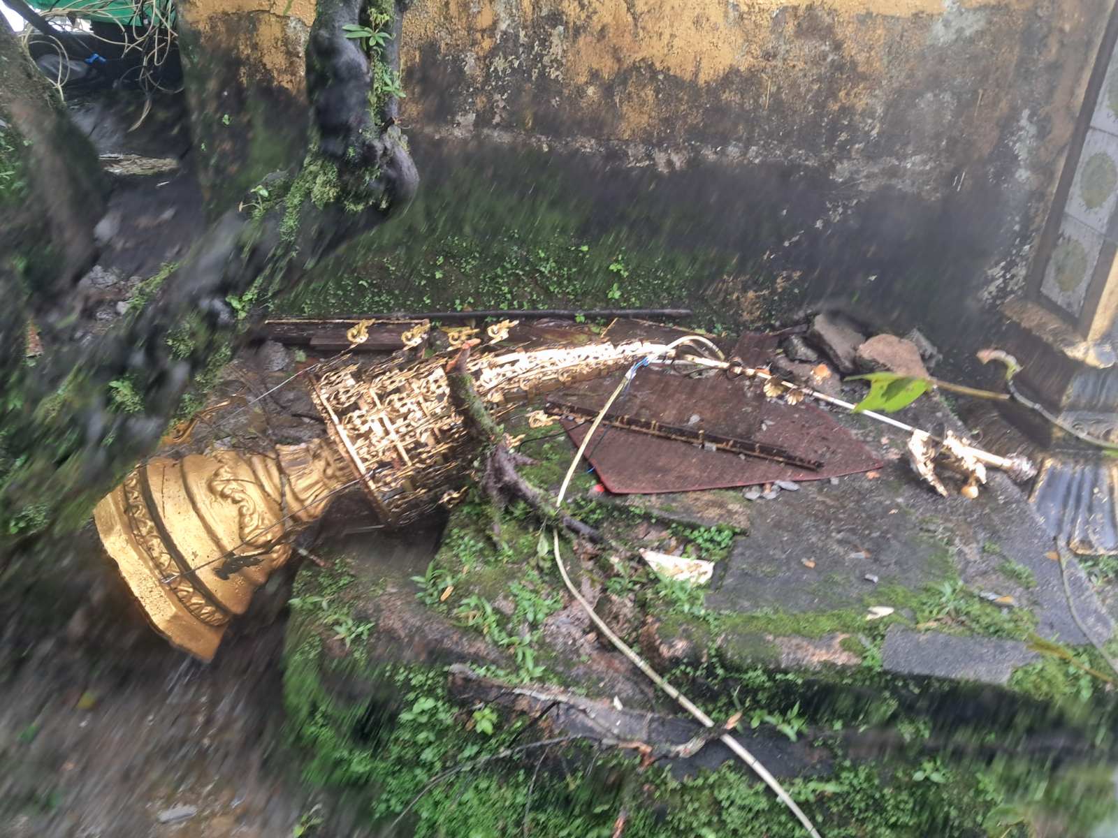 မွန်ပြည်နယ်၊ ကျိုက်ထိုမြို့နယ်တွင် ယနေ့မွန်းလွဲ ၂ နာရီခန့်က မိုးသည်းထန်စွာရွာသွန်းပြီး လေးပြင်းတိုက်ခတ်မှုကြောင့် ကျိုက်ထိုမြို့နယ်၊ ကင်မွန်းချောင်းကျေးရွာရှိ ဆံတော်ရှင်ကျိုက်ထီးရိုးစေတီတော်မြတ်ကြီး ရင်ပြင်တော်အနီး နတ်တောင်ပေါ် ဂြိုလ်တိုင်ပေါ်ရှိ စေတီငယ်တစ်ဆူသည် ဂြိုလ်တိုင်အမြင့်(၂၀)ပေခန့်ရှိ တိုင်ပေါ်မှ ပြိုကျမြေခခဲ့ကြောင်းနှင့် အလားတူ ရင်ပြင်တော်ပေါ် သီဟဆောင်ရှိ မျက်နှာချပ်သည် လေပြင်းတိုက်ခတ်မှုကြောင့် ပျက်စီးခြင်း၊ ဧည့်ခန်း(၁) မျက်နှာချပ်များ ကွာကြခြင်းများဖြစ်ပွားခဲ့ပြီး ဘုရားခန်းနှင့် ဧည့်ခန်း(၁)တွင် မိုးရေများယိုစိမ့်ခဲ့ကြောင်း သိရှိရသည်။